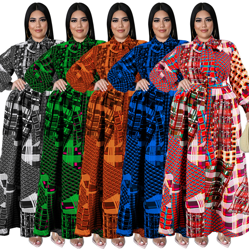 218235国境を越えた欧米の大コード秋の女装卸売りソース長袖有襟ワンピースアマゾンソース工場