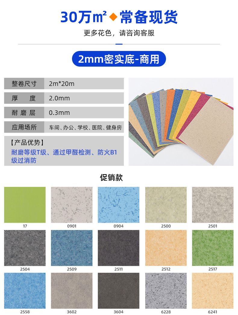 Pvcプラスチック床耐摩耗防水滑り止め学校倉庫地ゴムオフィス商用1.6mm床ゴム