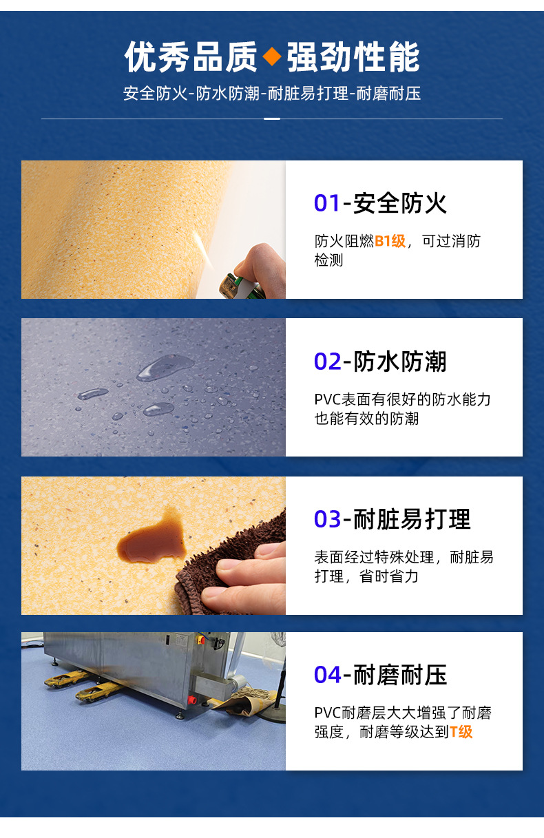 メーカー供給PVC床材滑り止め耐摩耗性耐火性工場倉庫PVC床材卸売難燃性防水