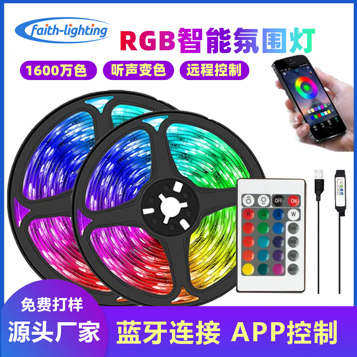 产品名称:5V5050RG七彩24键蓝牙白色遥控灯带套装