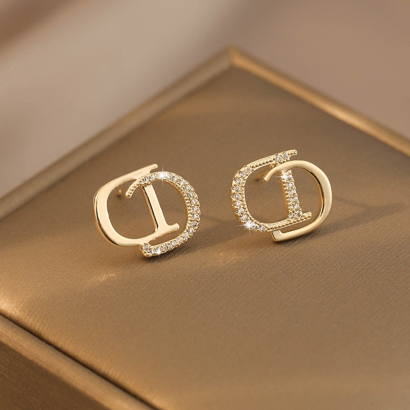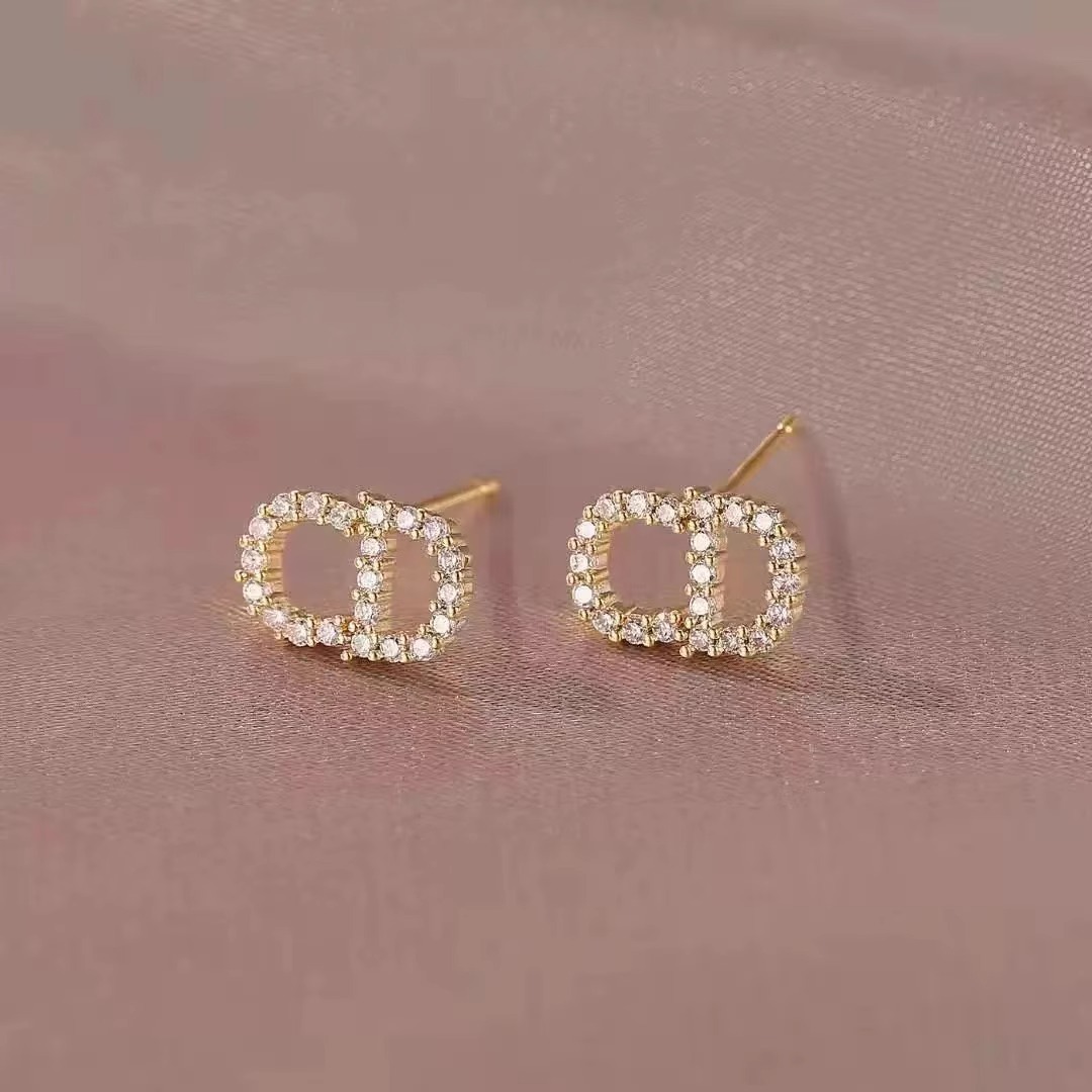 Ins風満ジルコン透かし彫り名媛アルファベットピアス欧米国境を越えた文字cdイヤリング925純銀針耳飾り女