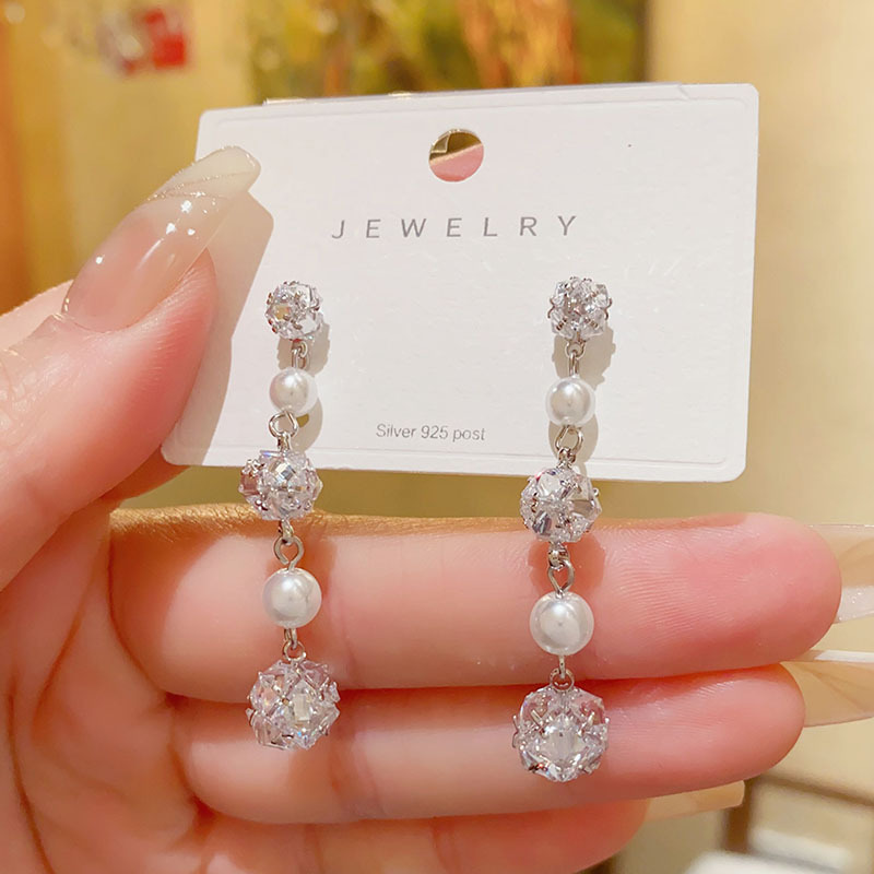 高级感轻奢时尚珍珠锆石球球耳环女2026年新款潮耳饰网红百搭耳饰