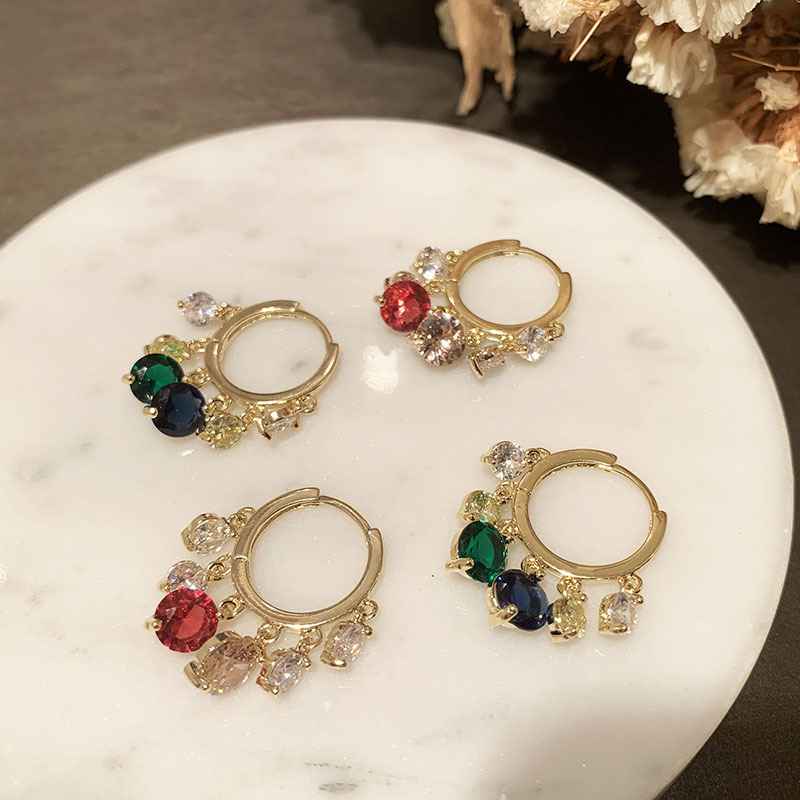 銅メッキの本物の金の軽豪華な輝きの祖母の緑の耳のボタンの女性のシンプルな大衆のデザイン感のカラーのジルコンの小さいフリンジのイヤリング