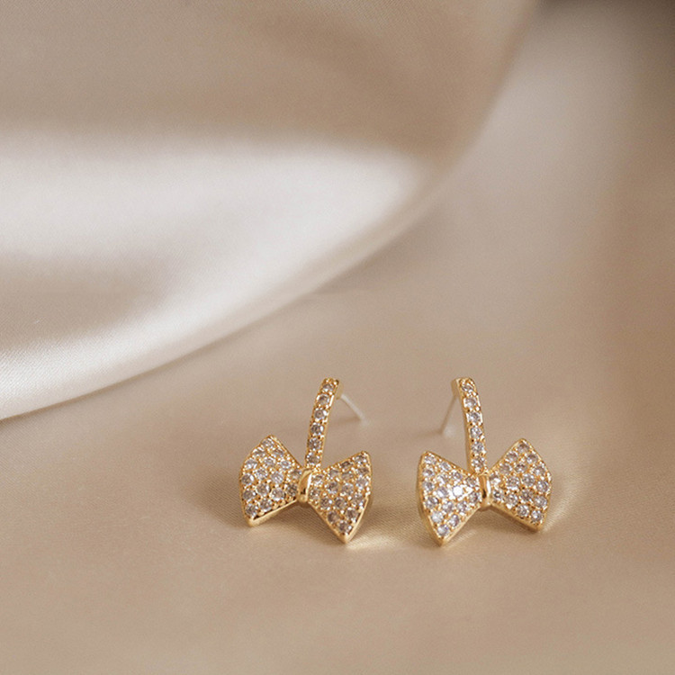 韓国の小型ジルコン蝶ネクタイs925銀針ピアスファッション満ドリルイヤリング気質ネットレッド耳飾り女