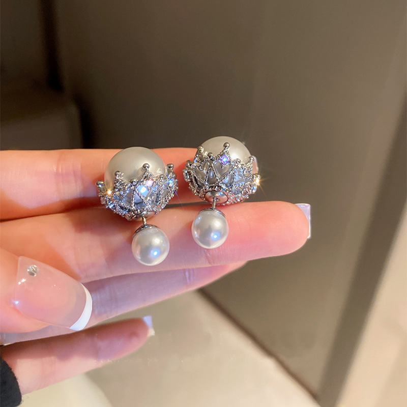 S925銀針にジルコン真珠の両面にイヤリングをつけたins気質の冷たい風ピアスファッションデザイン感ピアス