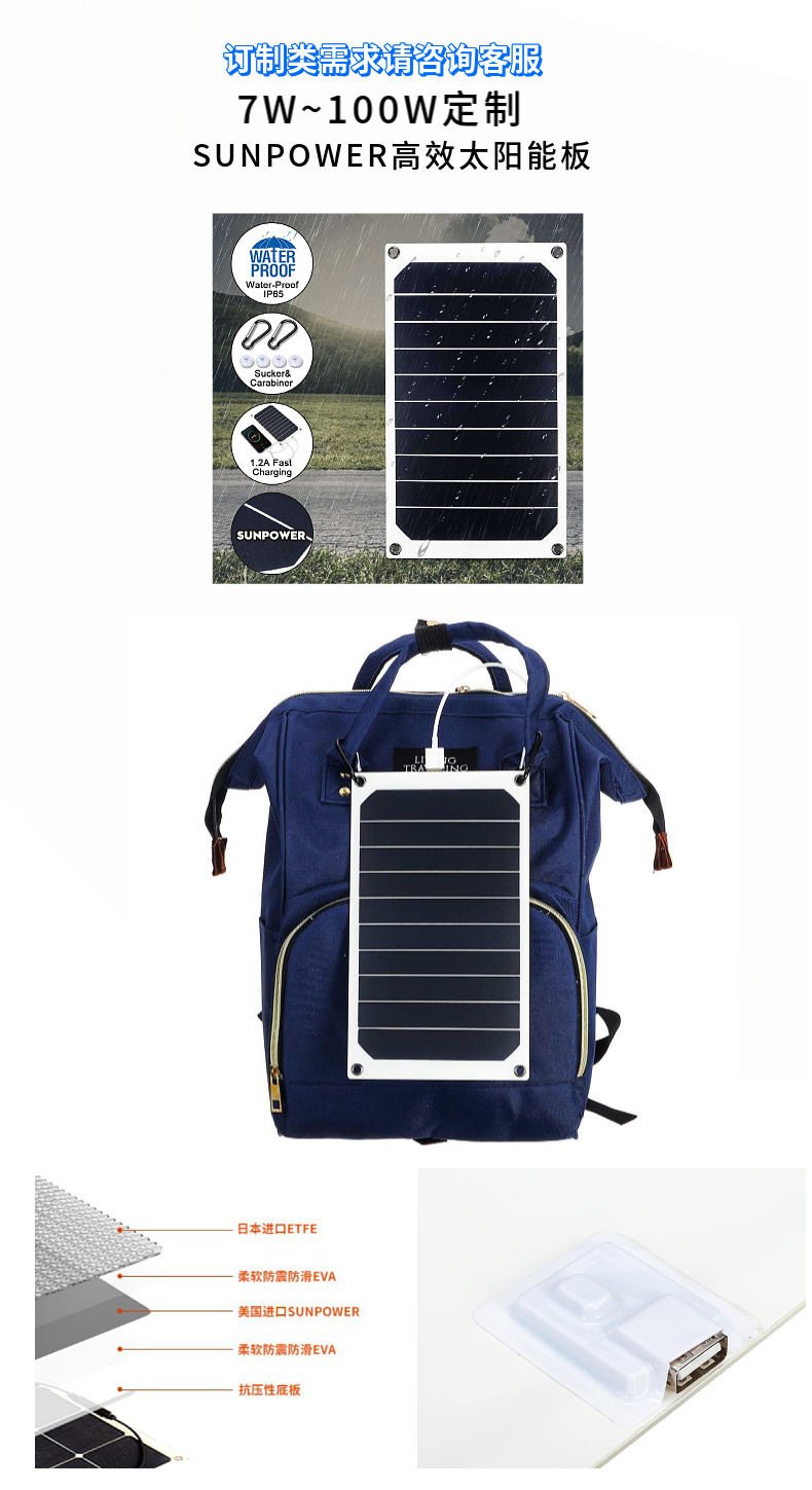 高効率ポータブル太陽光発電フレキシブル充電パネル、ソーラーパネル、屋外携帯電話デジタル充電器
