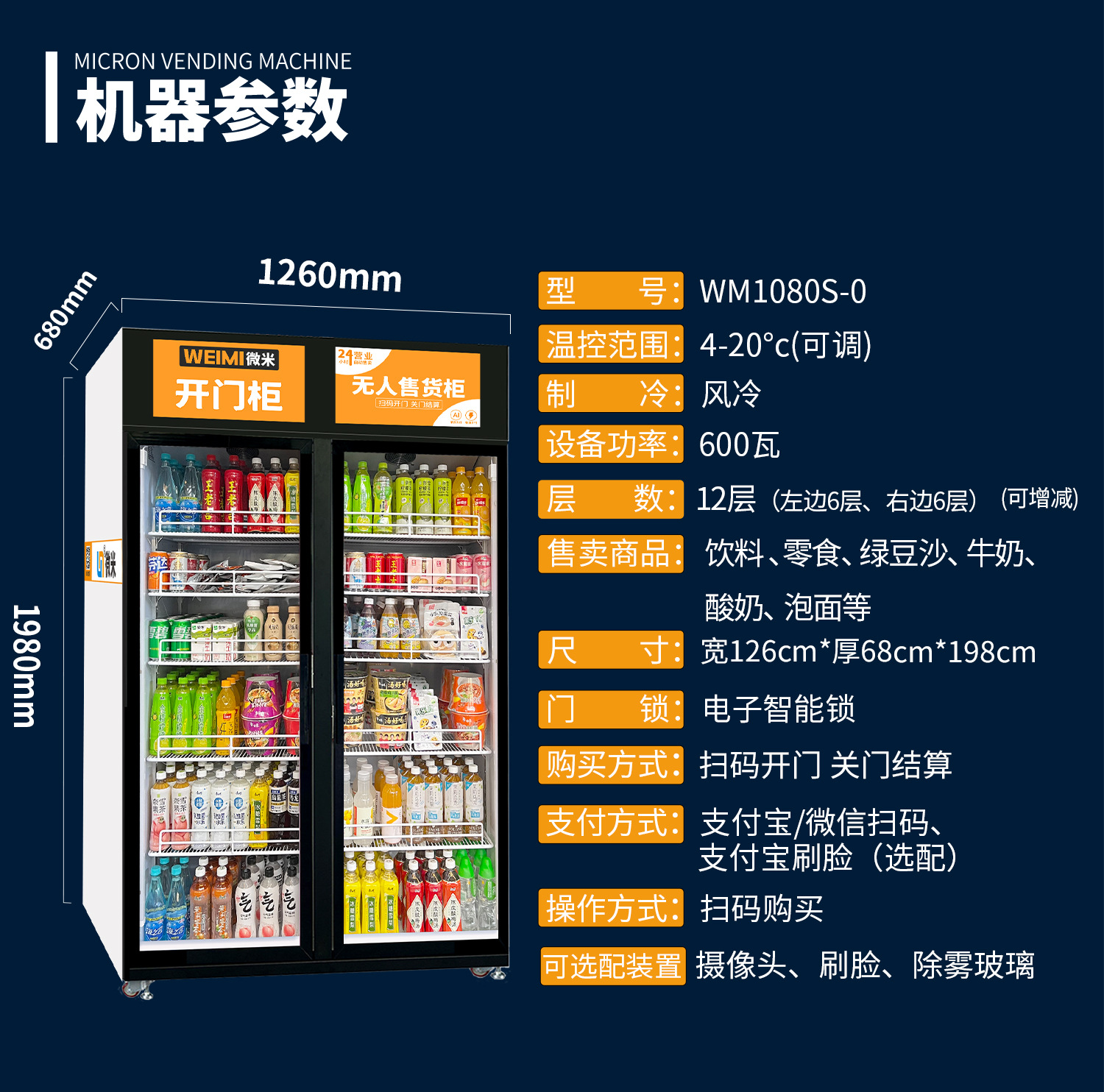 小麦便利自動販売機 24時間無人販売機 スナック・飲料 スマートセルフサービス開閉式販売機