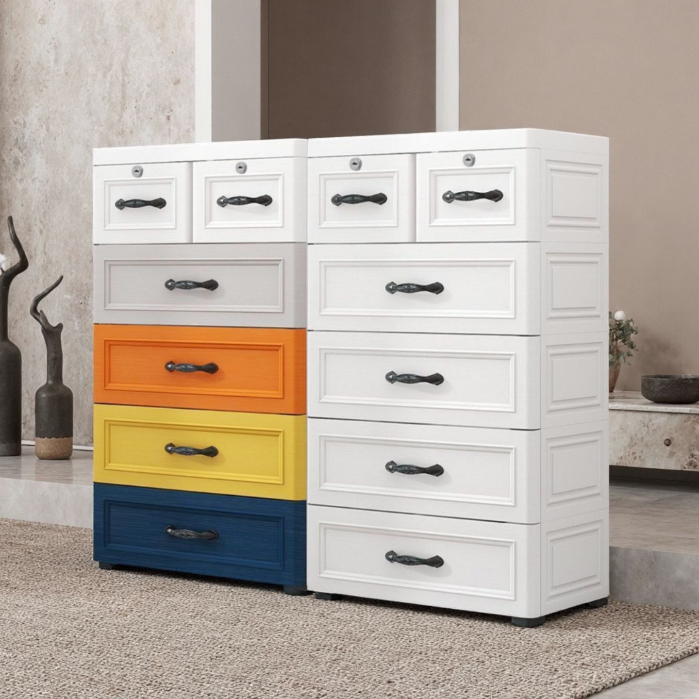 クロスボーダー48/53/63ロック付き引き出し式収納キャビネットプラスチック多機能整理ボックス多層収納キャビネット五段チェスト