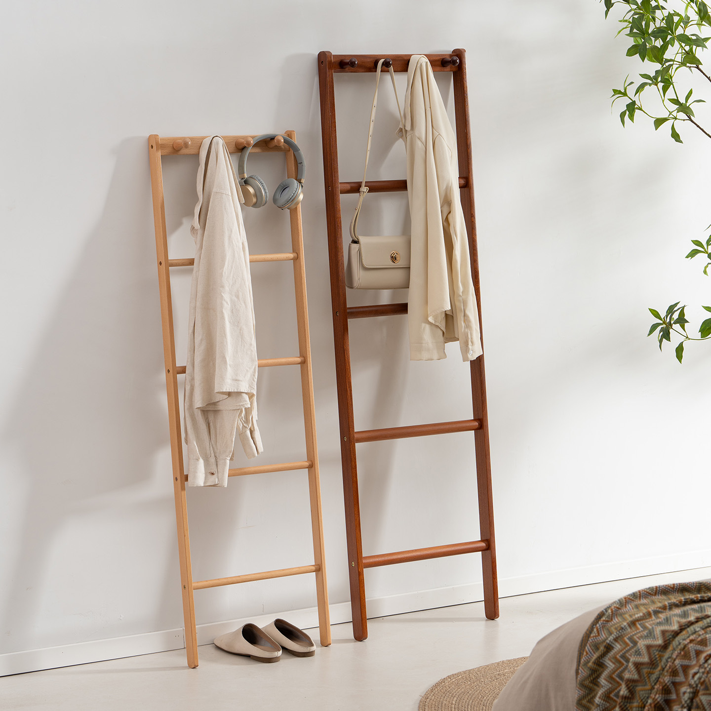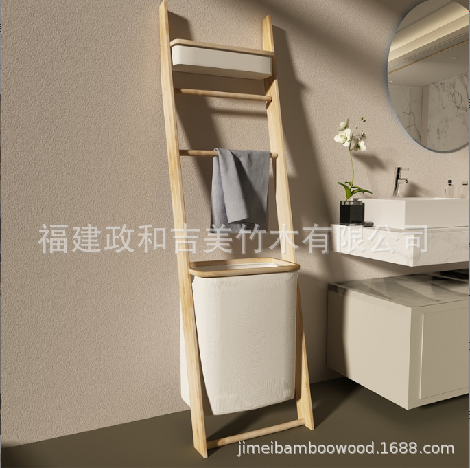 榉木简约现代梯子衣架梯形衣帽架卧室浴室衣服实木靠墙楼毛巾架