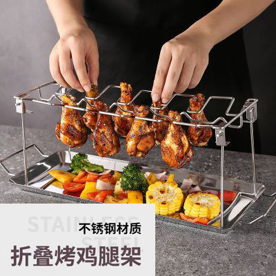 ステンレス鋼屋外バーベキューチキンレッグスタンド折りたたみチキンレッグプレートバーベキューグリルシャーシ付きバーベキューバーベキューグリル