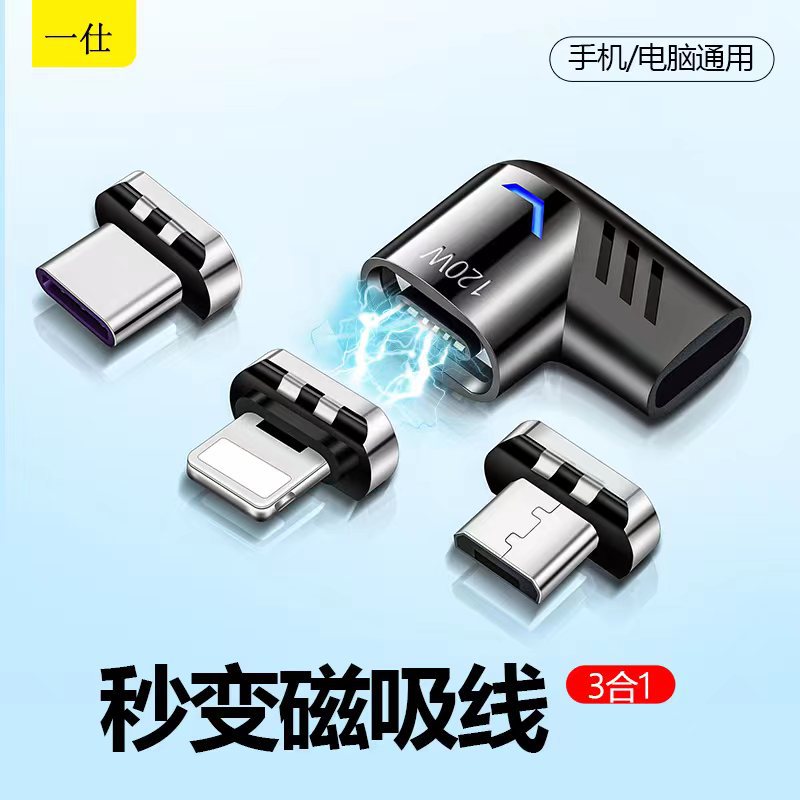 Type-c磁気吸引アダプタ120w三合一適用リンゴ華為switch米oppo携帯電話パソコン