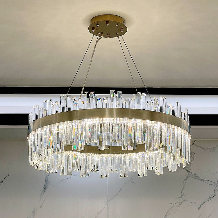 軽奢クリスタルシャンデリア、ホテルロビー、展示ホール、LED照明、二層リビングルームランプ、ステンレス製レストランシャンデリア