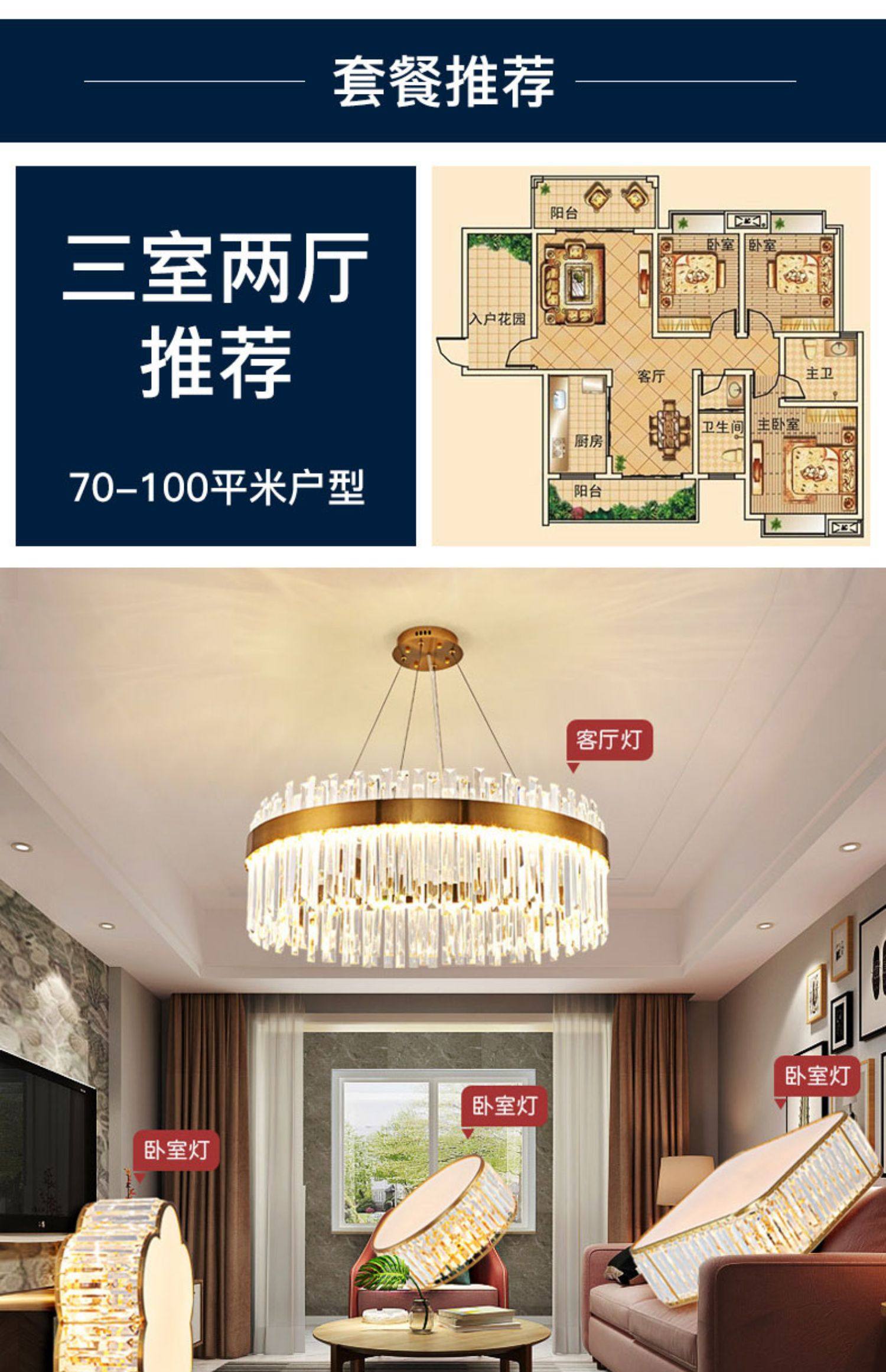 軽豪華水晶シャンデリア客間灯北欧後現代シンプル寝室食堂灯別荘全屋灯具セット