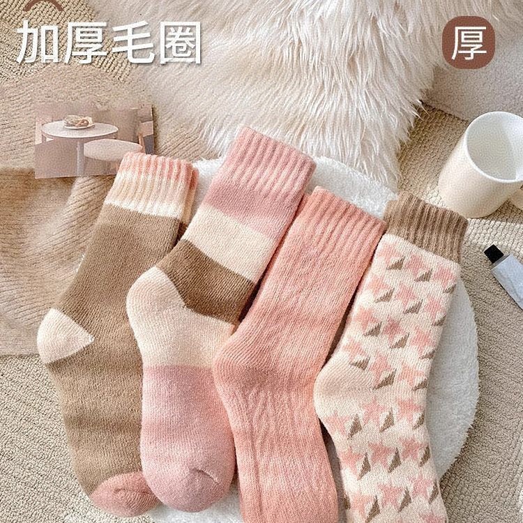 袜子女秋冬季加厚保暖毛圈袜甜美日系冬季中筒袜ins潮外穿长筒袜