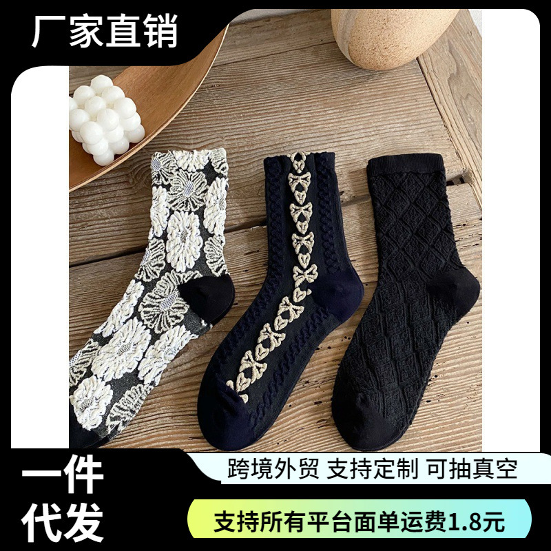 日本の黒い靴下の女性の花のレトロな中筒の靴下の秋冬insの潮のストッキングのネットの赤いタイプの外はローリjkの靴下を着ます。
