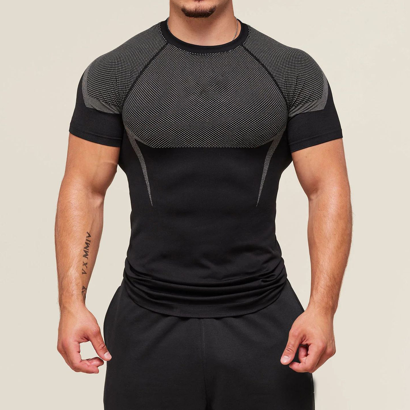 跨境欧美速干运动紧身短袖T恤男士印花弹力透气撸铁健身训练上衣