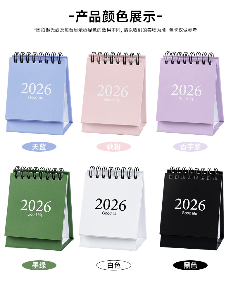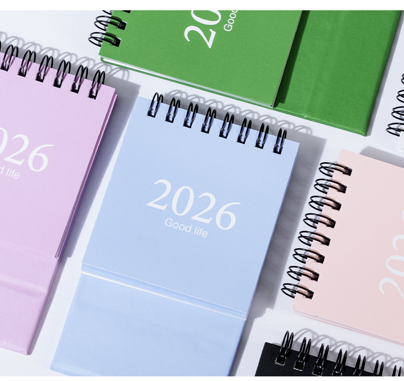 跨境英文记事小台历纯色2026日历桌面计划本备忘莫兰迪简约留言本
