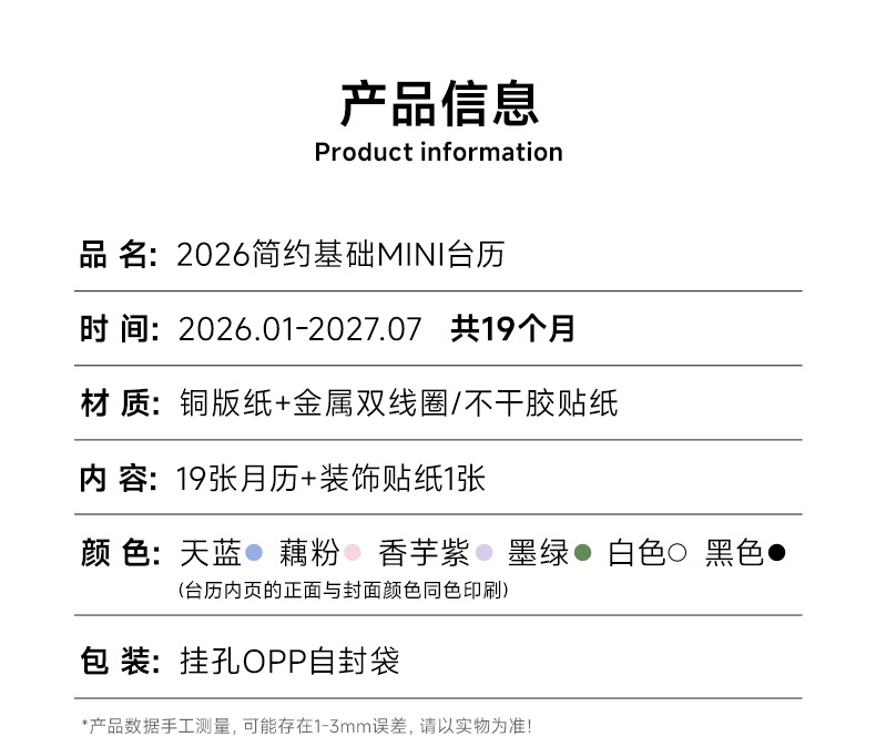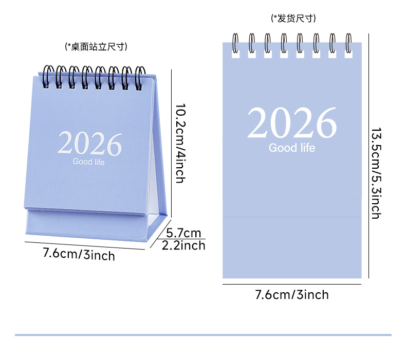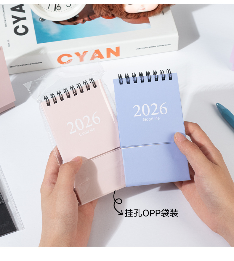 2026年简约风英文版mini台历莫兰迪台历桌面摆件便携式跨境日历