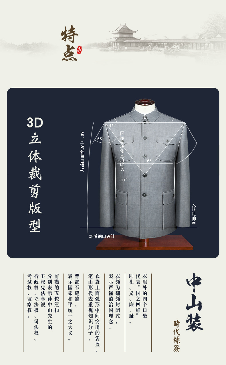 Z中山服男性スーツ一枚春秋モデルコート父服老年中山服中国風服