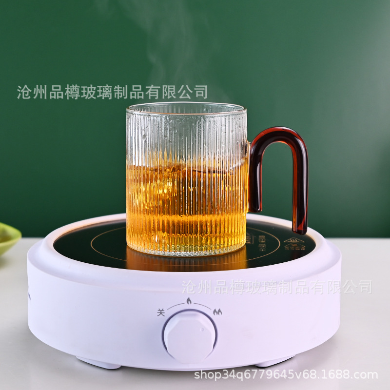 シンプルな縦紋カラーグラス家庭用コップオフィスカップコーヒーカップのデザートu型ハンドルカップのアイデア