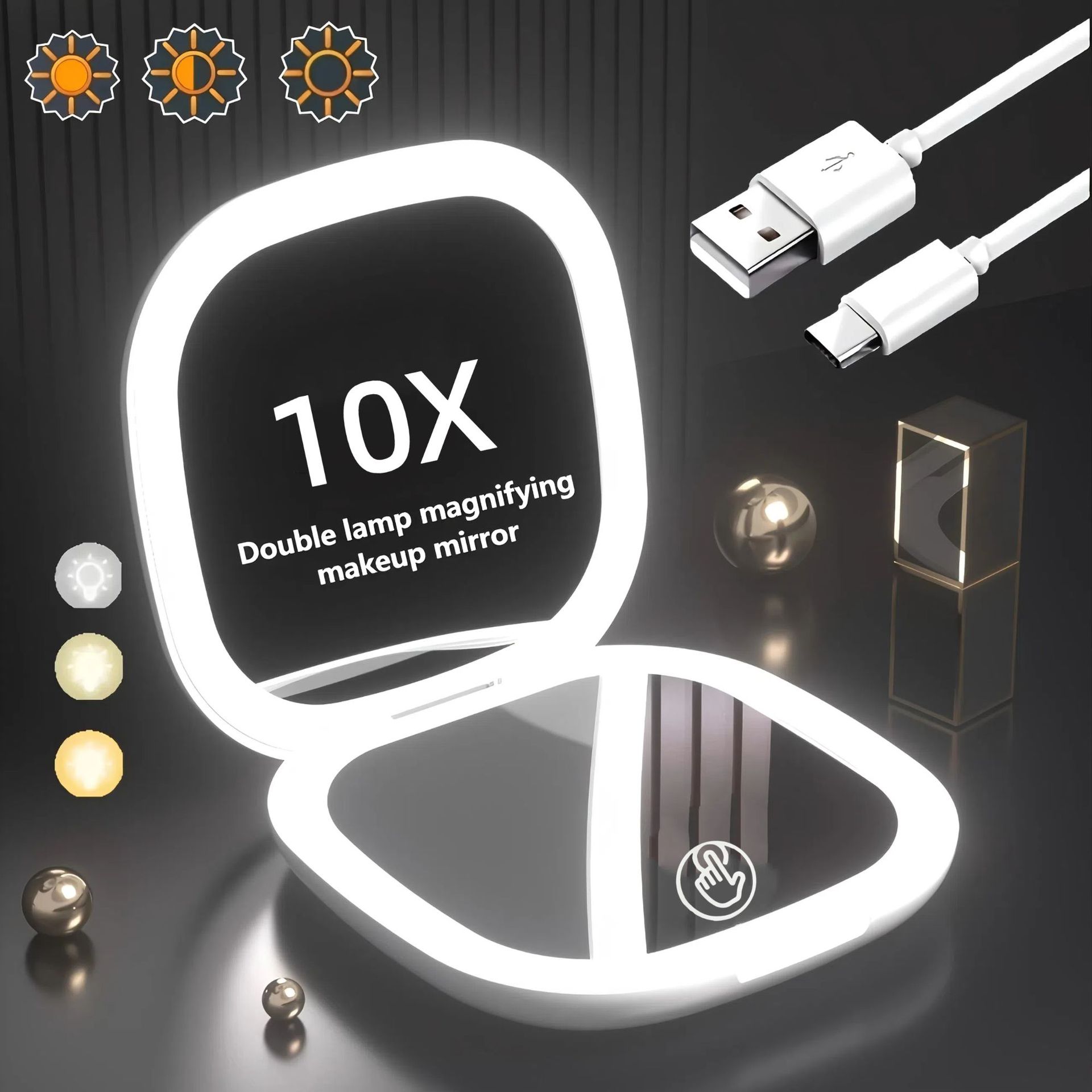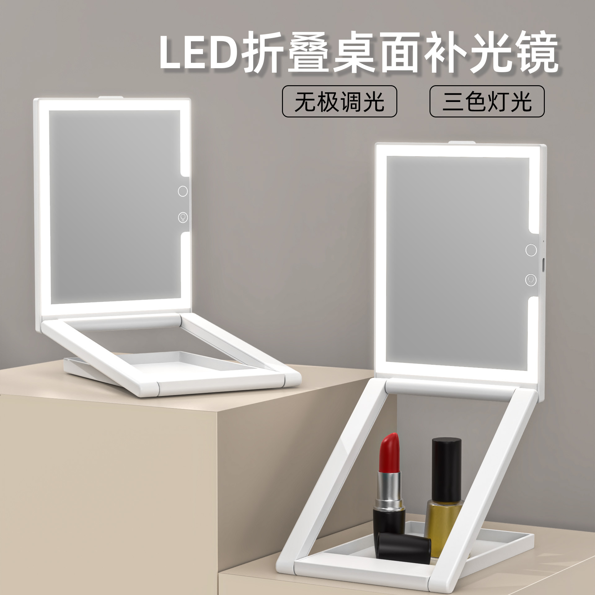 美礼品灯带亚马逊热销跨境爆款小巧圆形网红美妆镜子便携家用折叠化妆箱化妆包