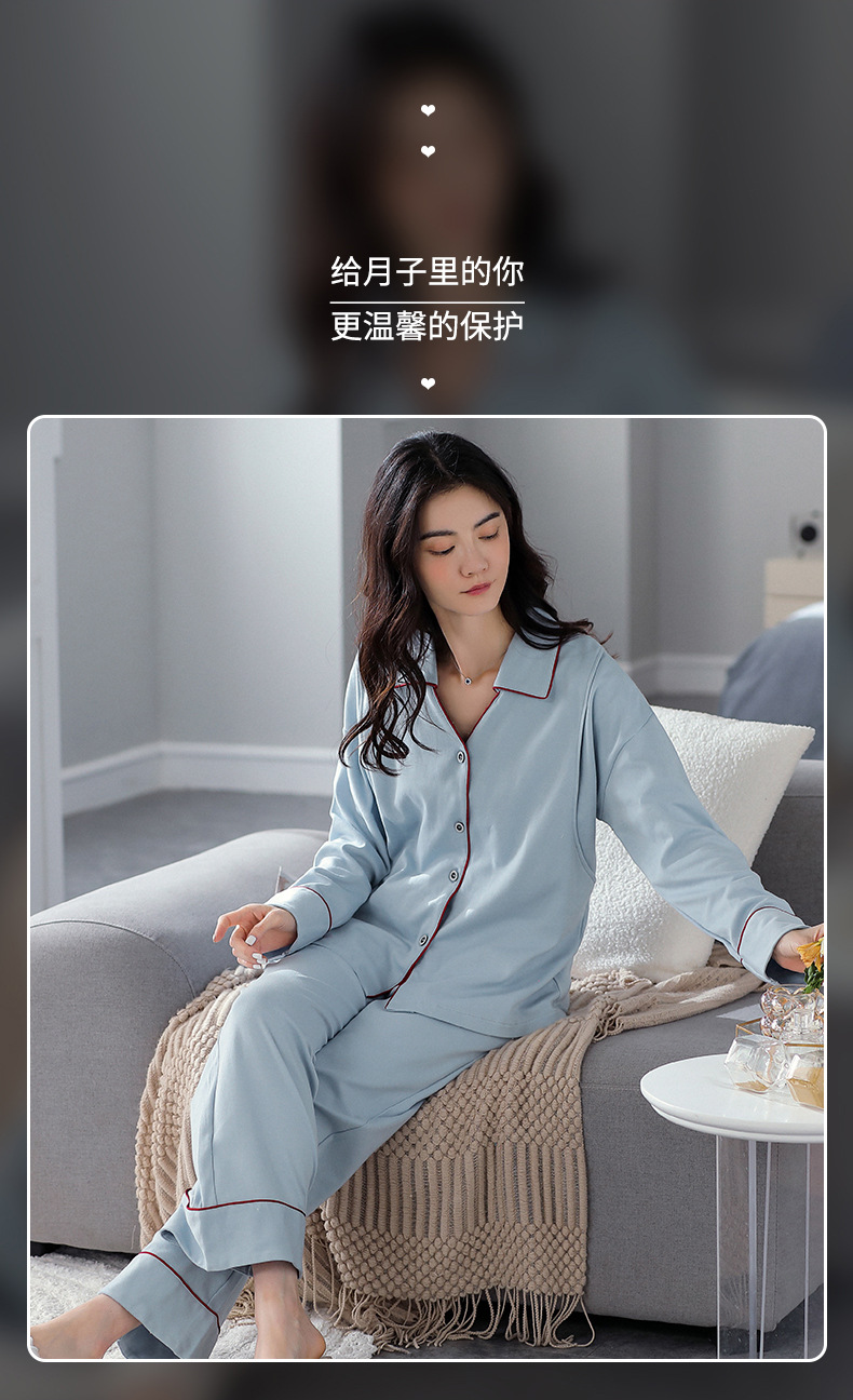 純綿月子服妊婦パジャマ春秋長袖出産前産後側開授乳服ホームウェアステッカーオーダー