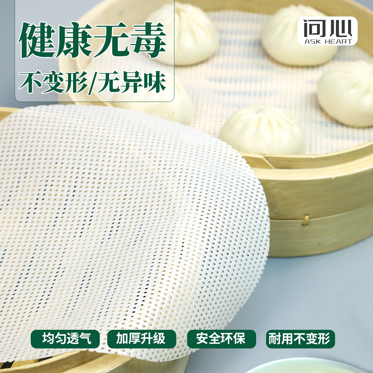 工厂生产销售各尺寸硅胶蒸垫,圆形、方形及特殊形状均可定制。产品符合国标GB4806.10-2016食品安全标准,蒸煮免刷油不粘面点,无颜色、气味。