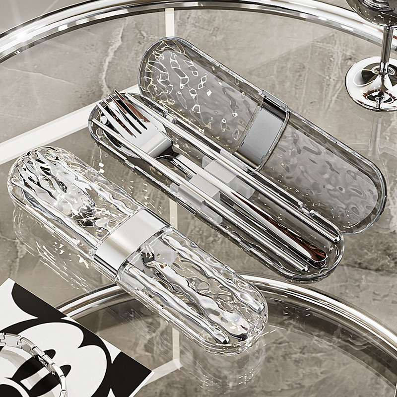 304不锈钢便携餐具网红高颜值水波纹餐具套装学生筷子勺子三件套