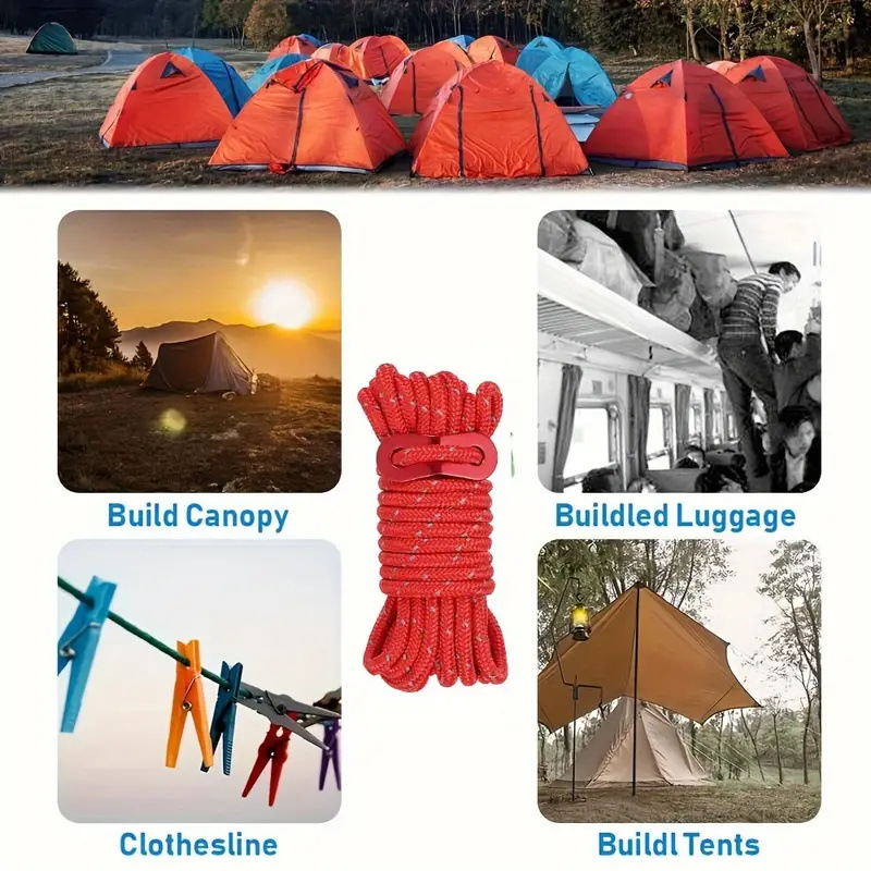 6mm厚キャンプテント防風ロープ3.4m6mアウトドアキャンプテントキャノピー調整バックル付き反射ロープ