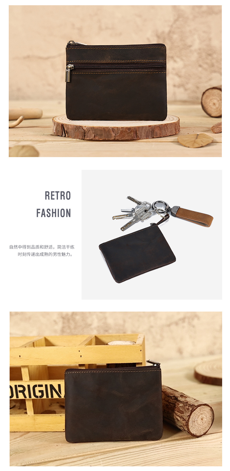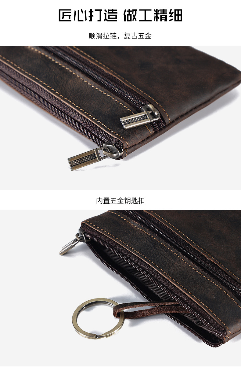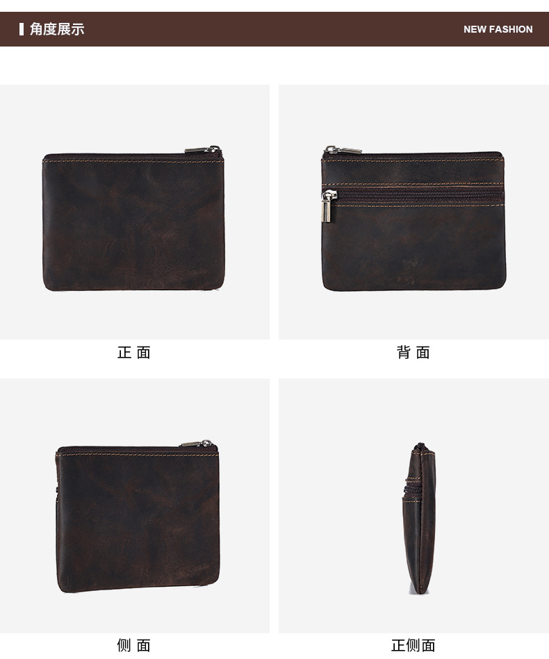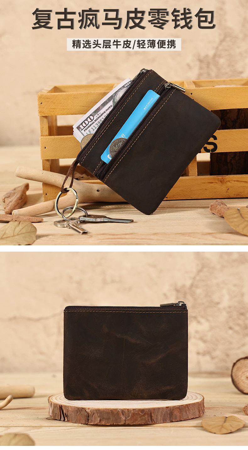 狂った馬皮小銭入れ学生本革小銭入れ多機能収納バッグファスナーストラップコインバッグ小銭入れ