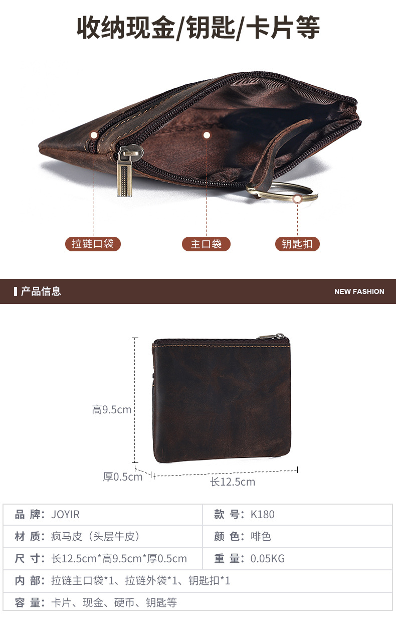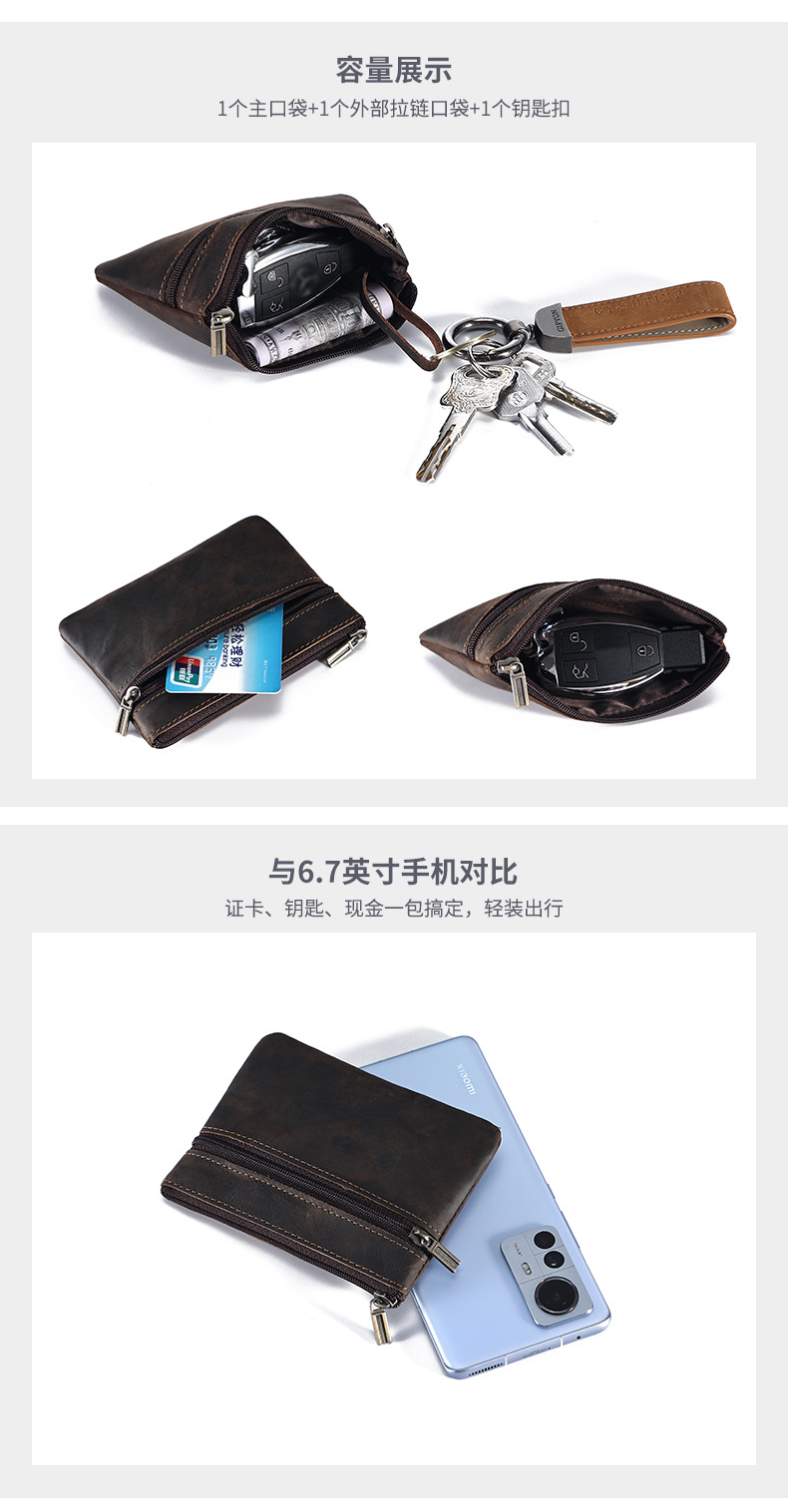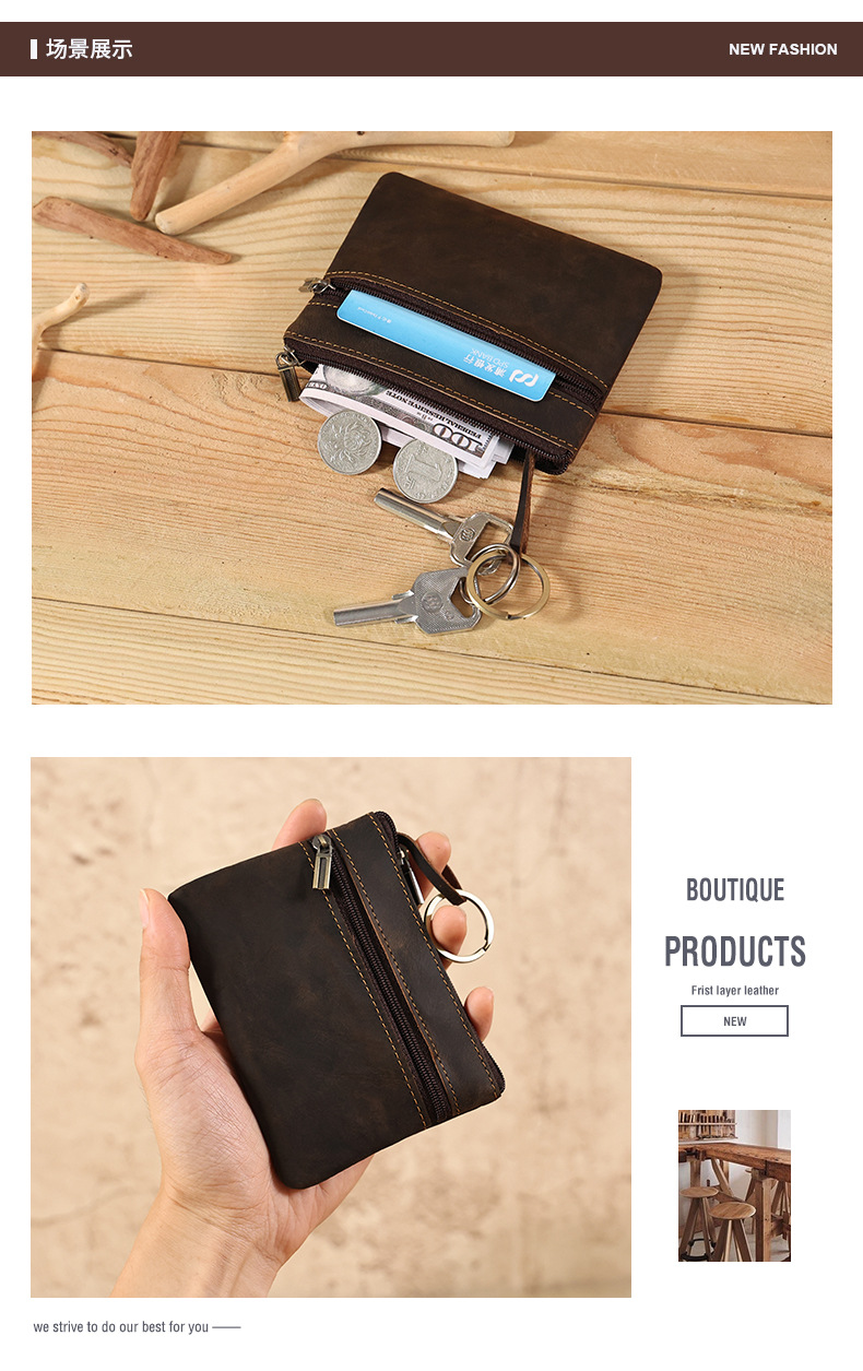 狂った馬皮小銭入れ学生本革小銭入れ多機能収納バッグファスナーストラップコインバッグ小銭入れ