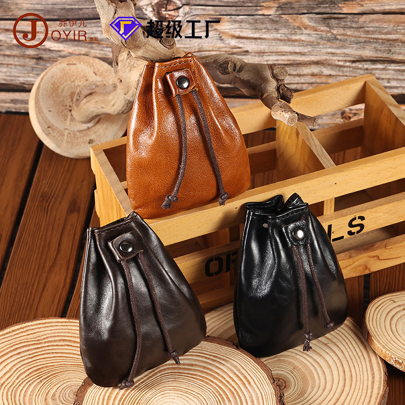 新しい牛革の小さい大衆のレトロな小さい小銭入れのコインのイヤホンの収納袋の本革の紐を引くミニ小銭入れの潮