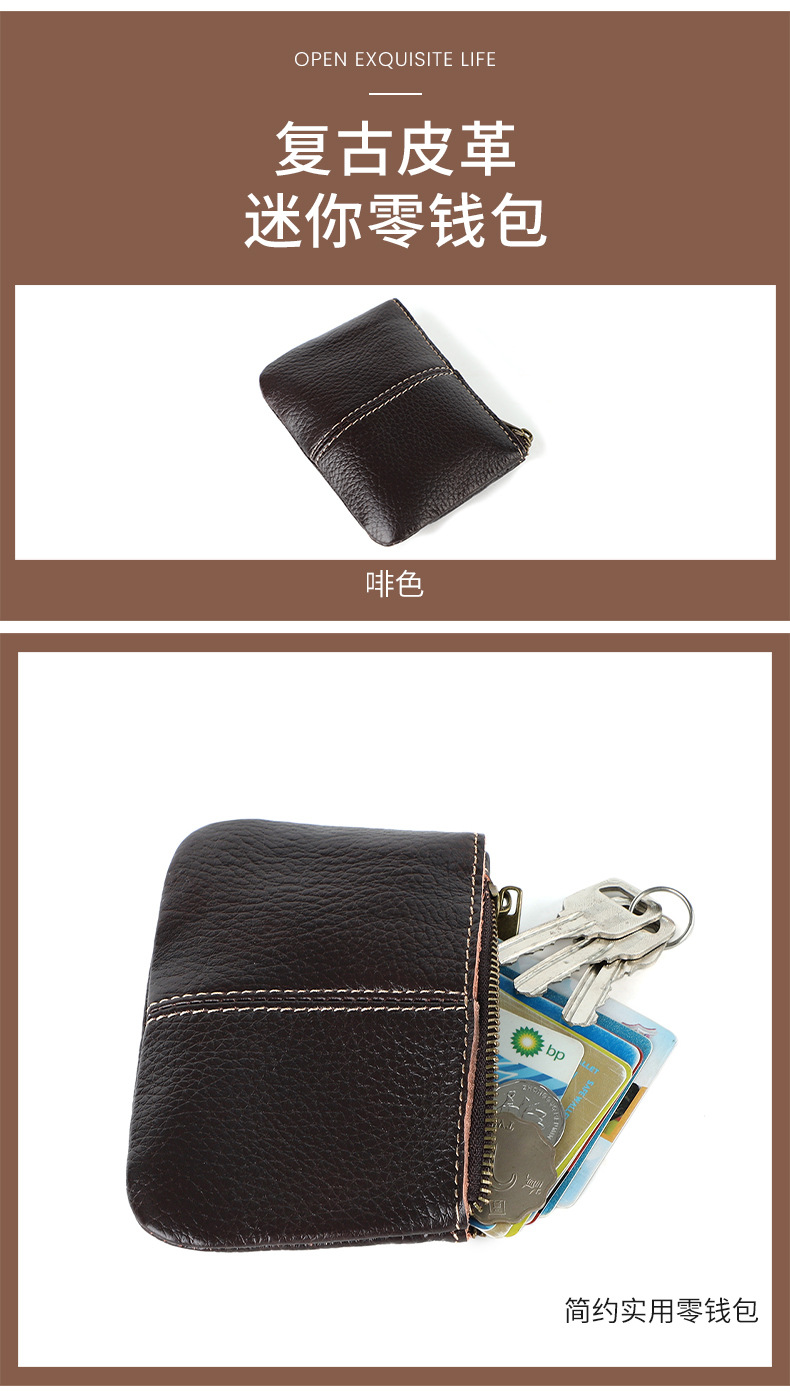工場卸売本革小物財布、丸型収納バッグ、第一層牛革カジュアルハンドヘルド財布、耐摩耗性と実用性を兼ね備えています。