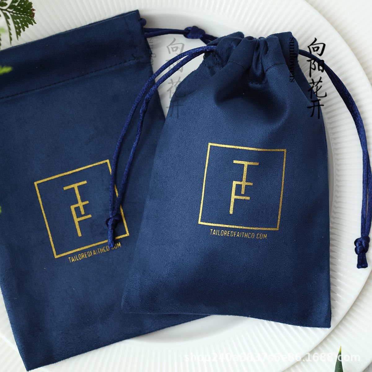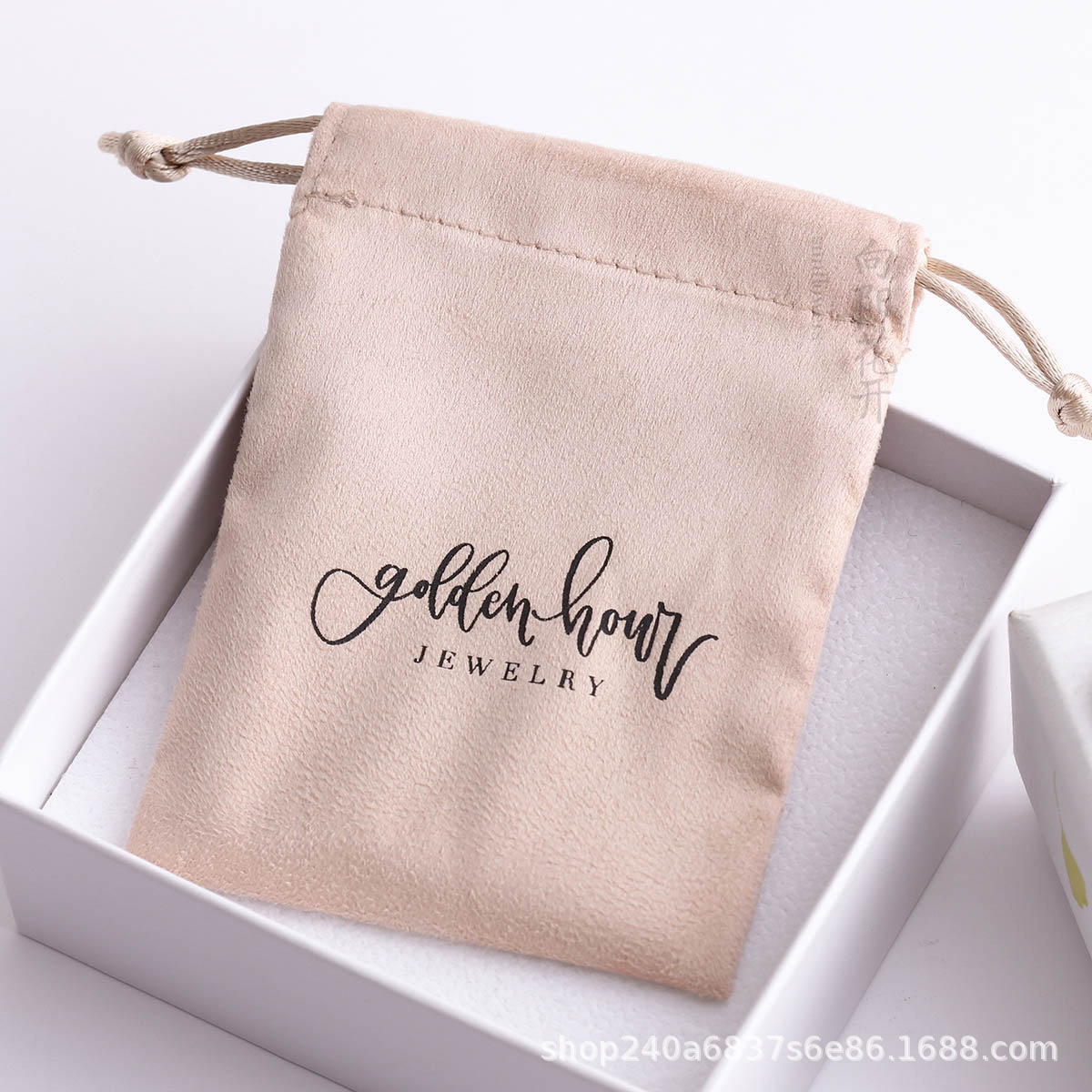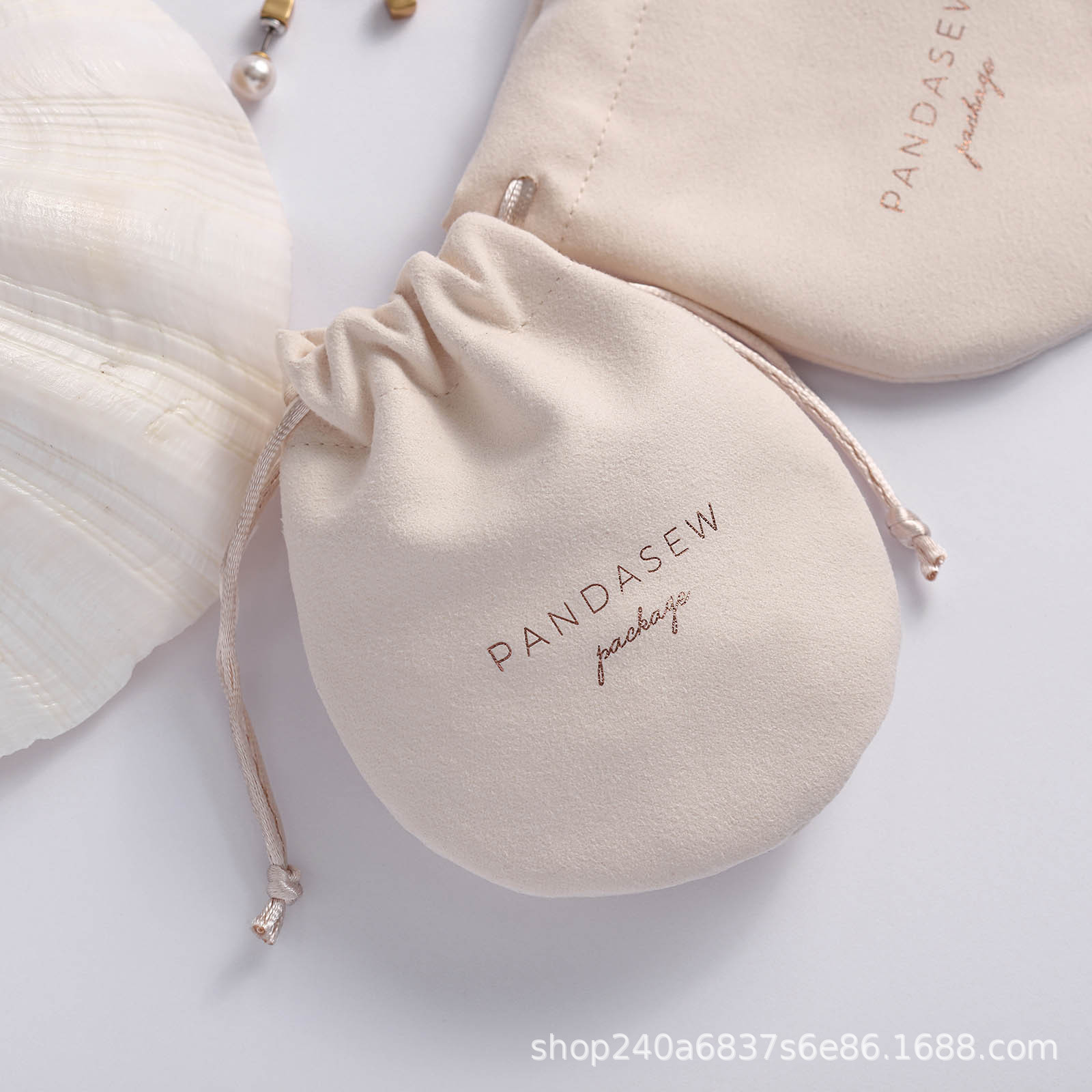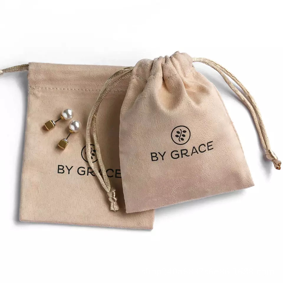 Pandasew印刷logo羊皮绒束口袋收纳戒指耳环项链饰品袋抽绳绒布袋