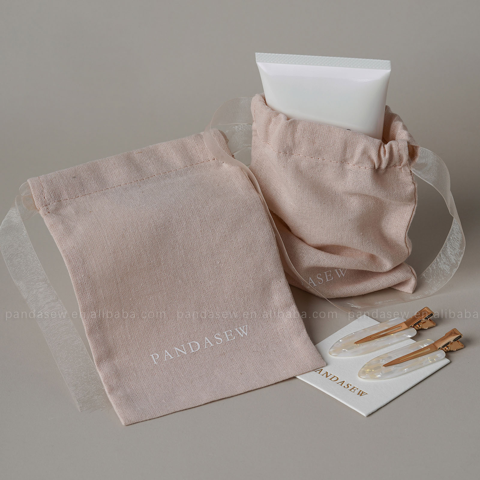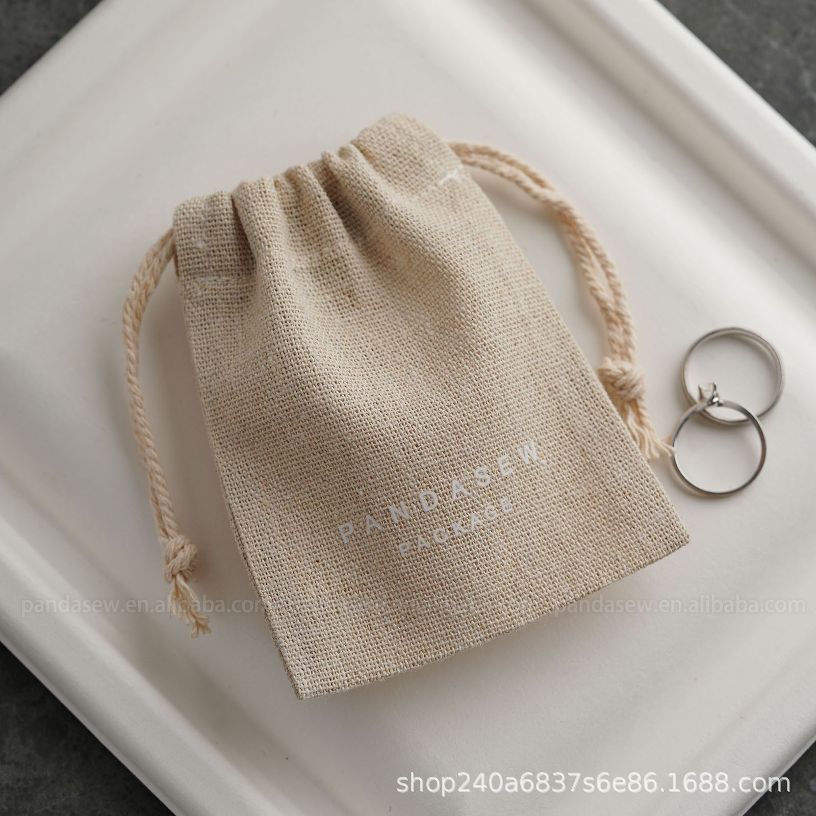 Pandasew 印刷logo简约彩棉耳环戒指袋首饰束口收纳袋抽绳袋