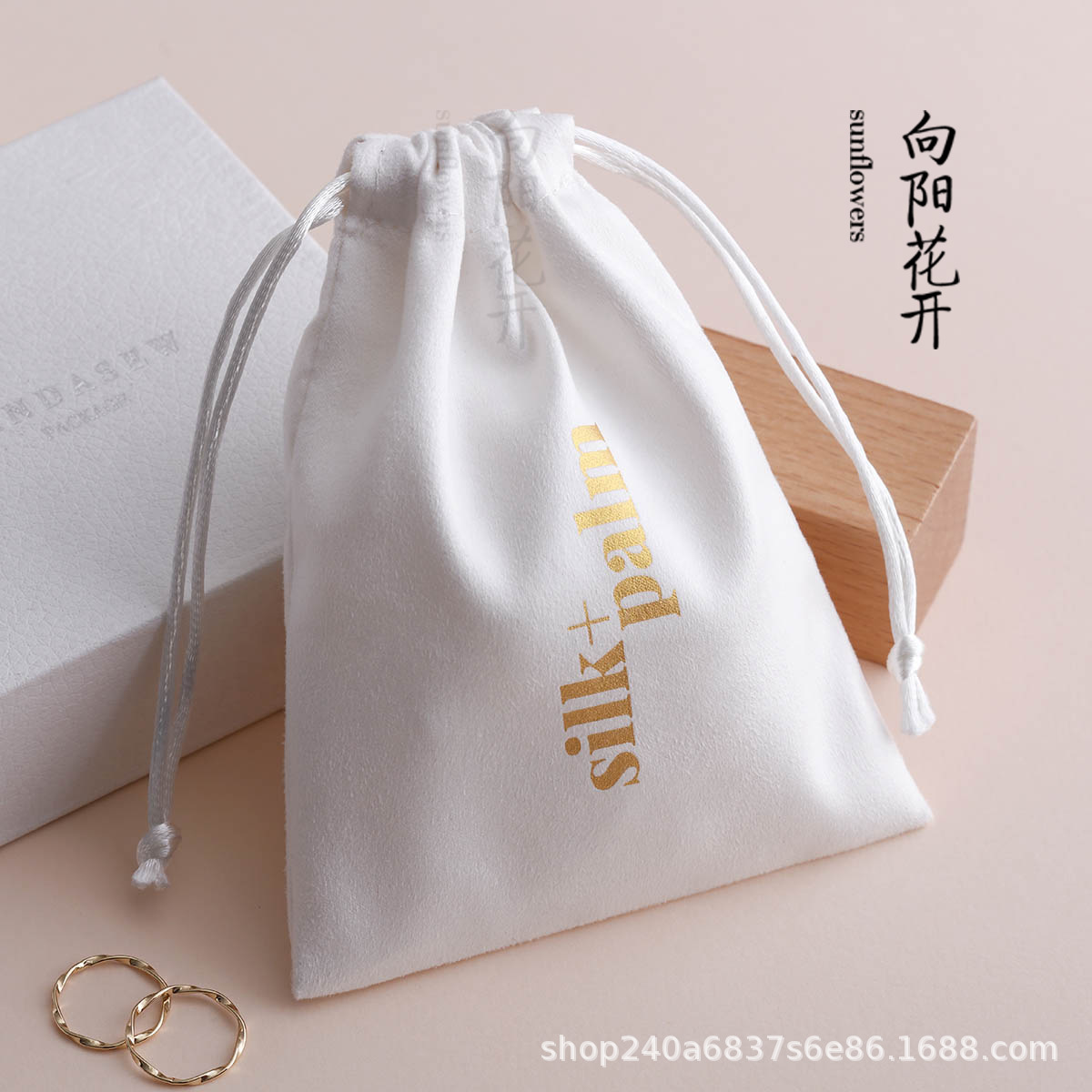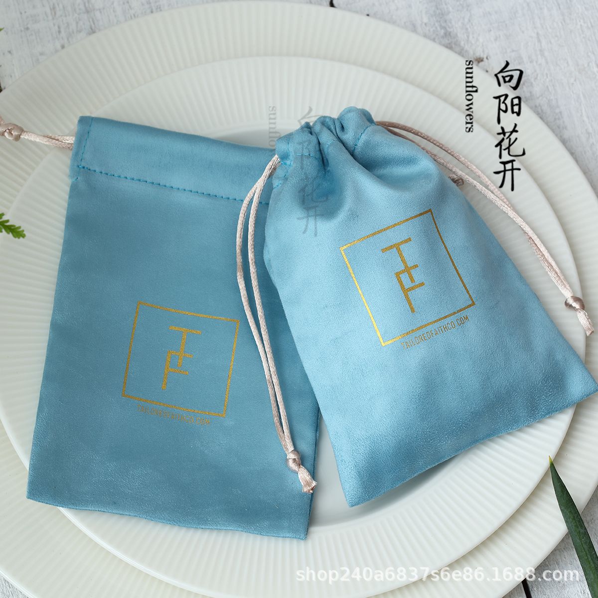 向陽花開xpandasew印刷ロゴ肉黄色ベルベット袋収納指輪イヤリングネックレスアクセサリー袋