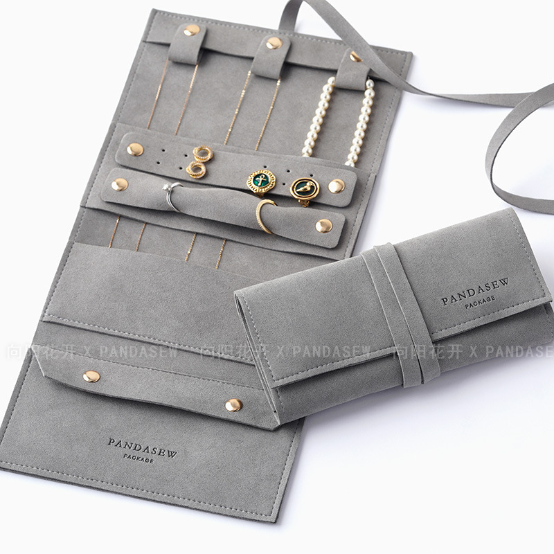陽に花を咲かせるxPandasewシンプルな超繊維多機能ジュエリー巻きイヤリング指輪ネックレスのブレスレット収納バッグ