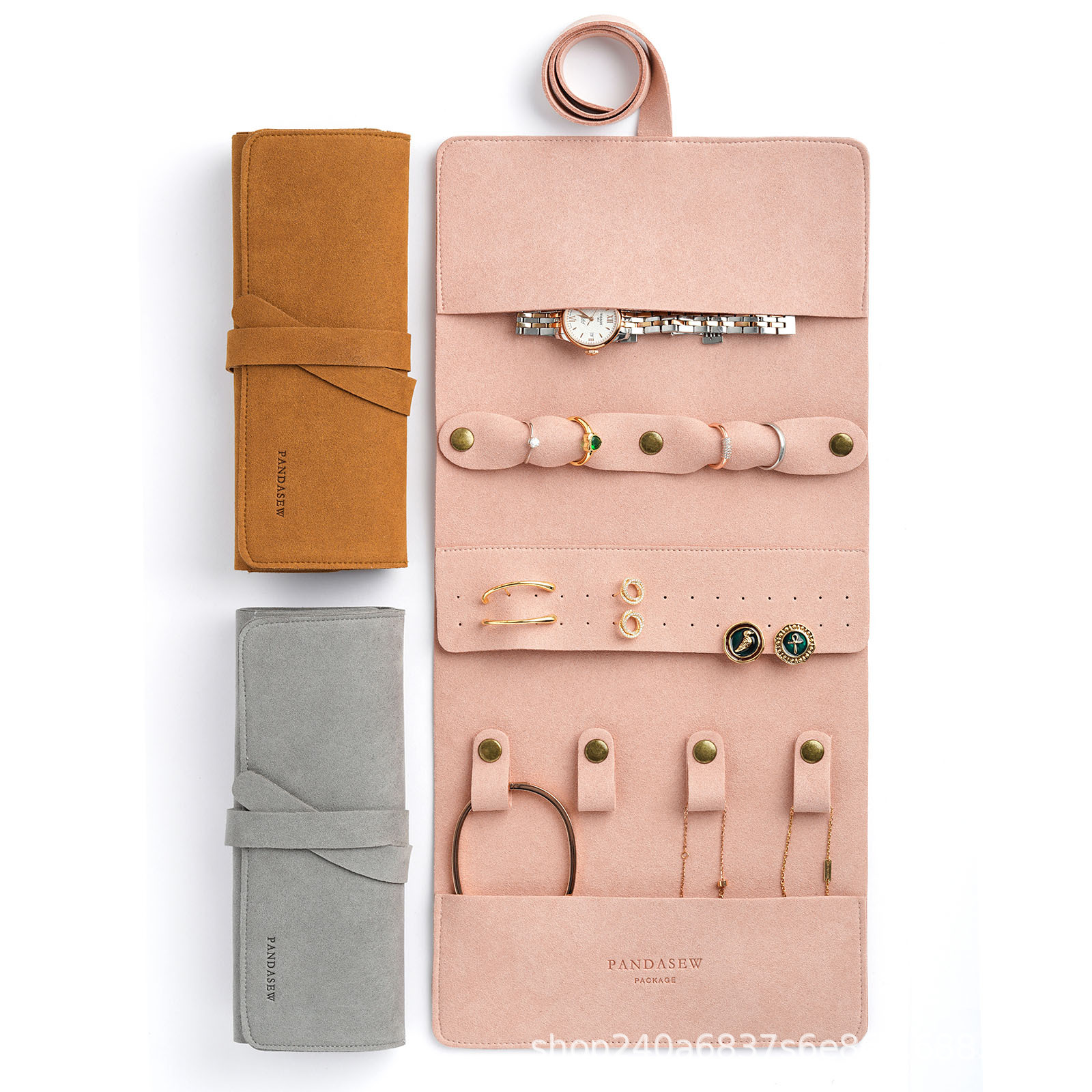 向陽花開xpandasewピンク超繊維多機能ジュエリー巻きイヤリング指輪ネックレス腕時計収納バッグ
