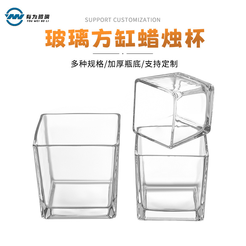 透明な正方形のキャンドルカップ厚みのあるガラス自家製アロマセラピー空のカップ多肉植物ディスプレイ植木鉢小さなカメ金魚水槽