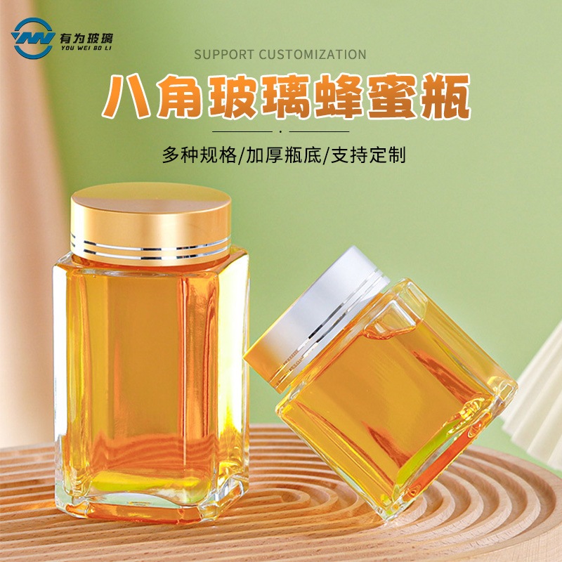 卸売り蜂蜜ガラス瓶1斤入2斤入漬物ジャム瓶八角蜂蜜分入瓶ガラス密封缶