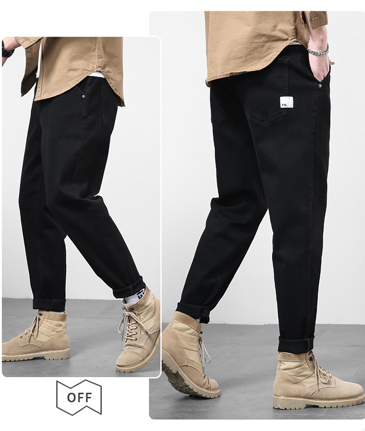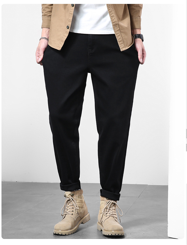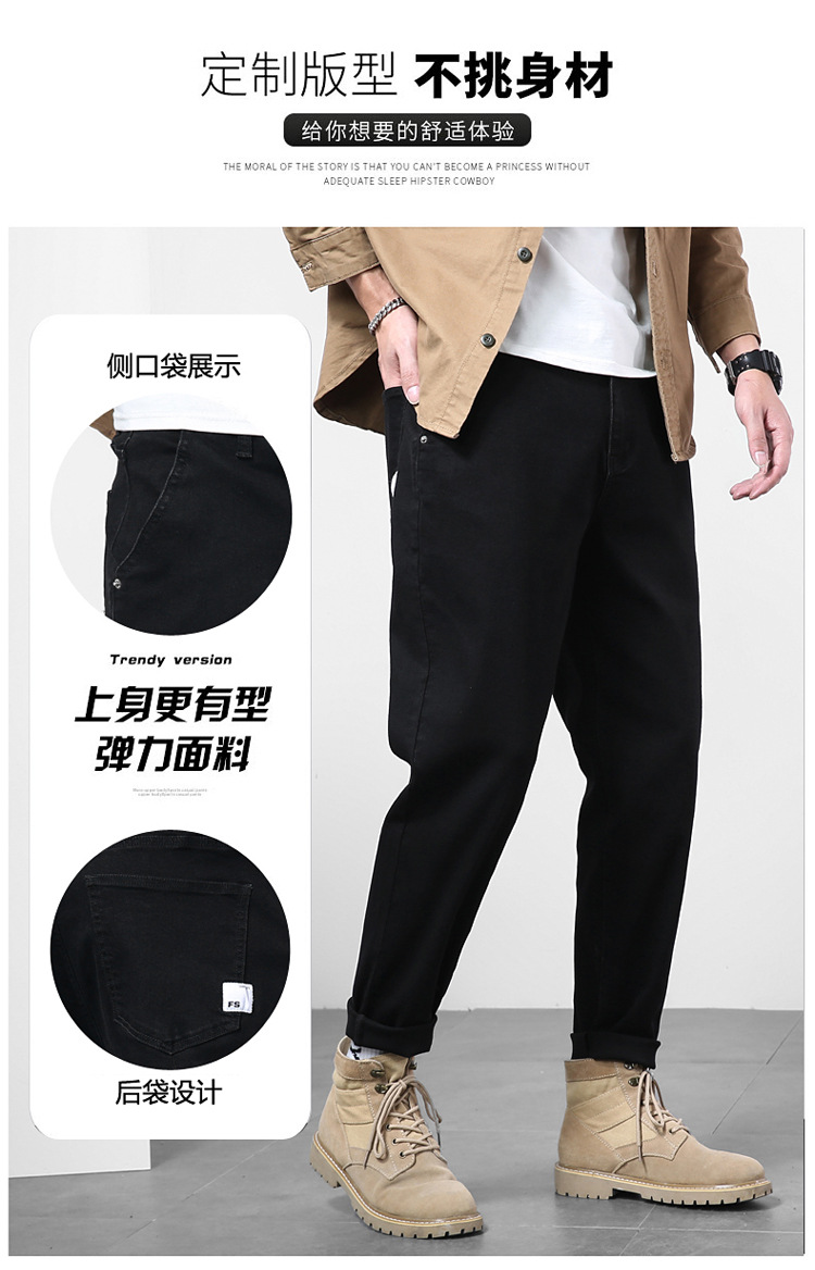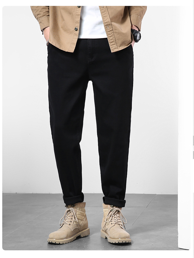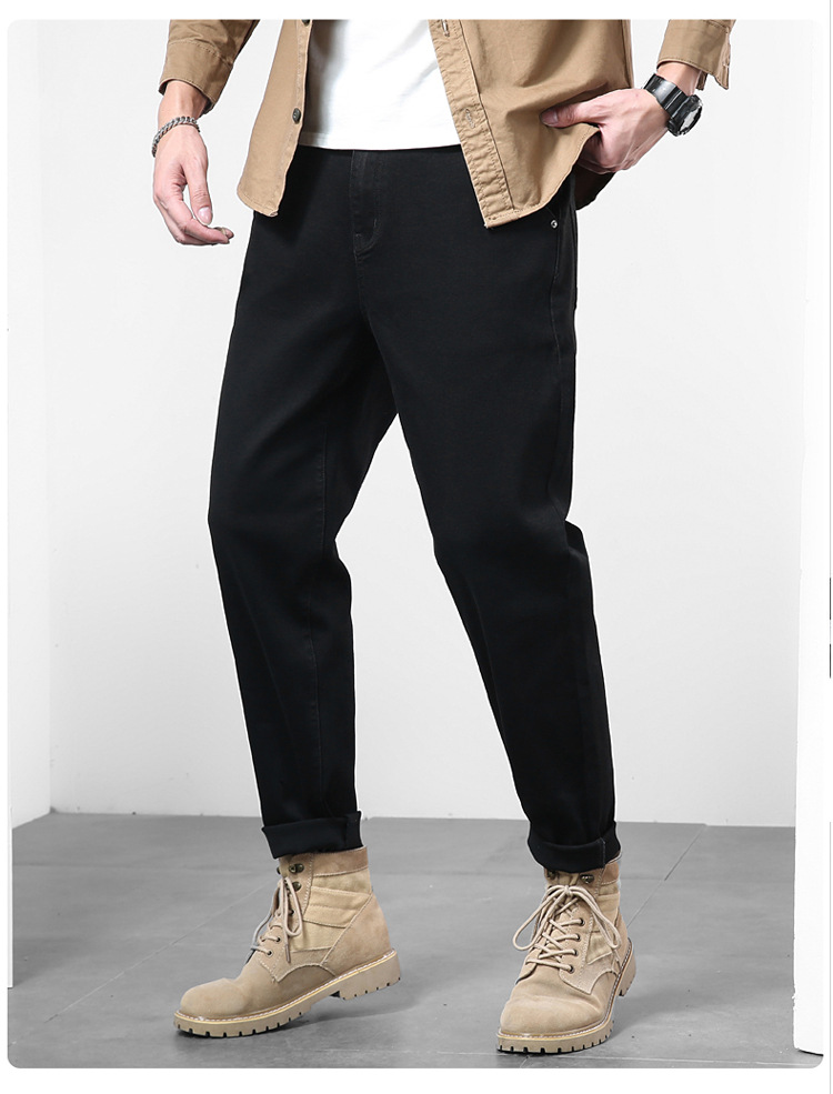 2024秋冬服男子ジーンズ男弾力黒小足ズボンハーレムズボン日系修身大サイズ長ズボン