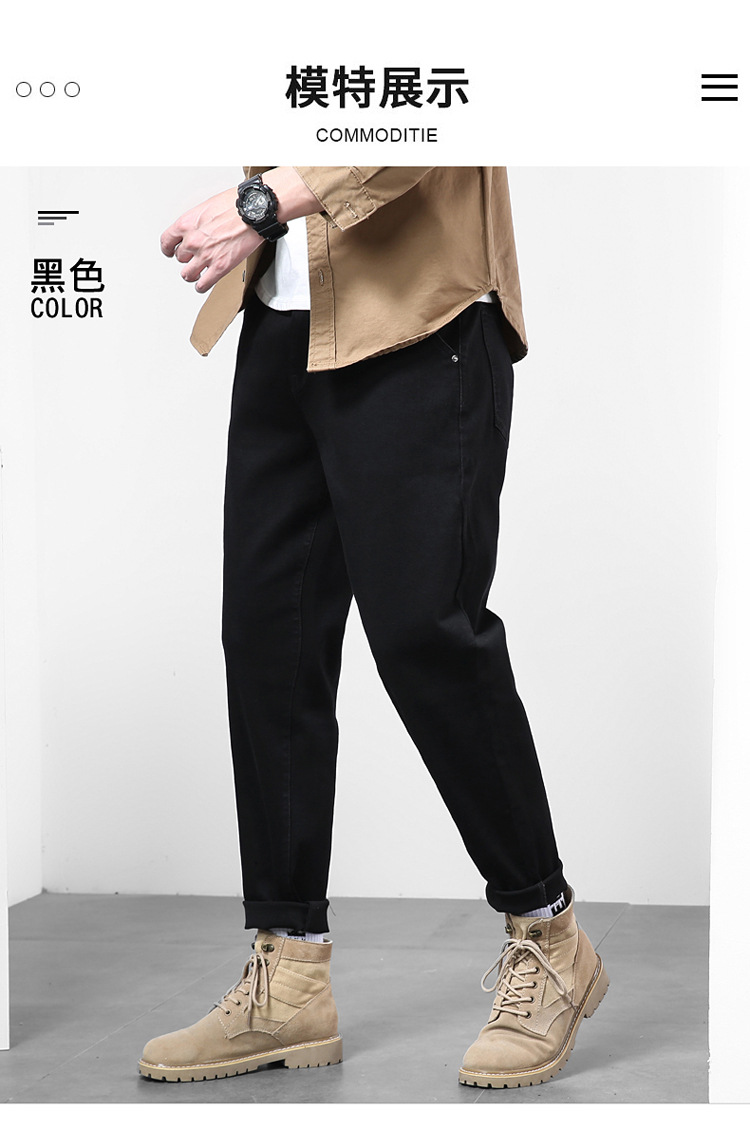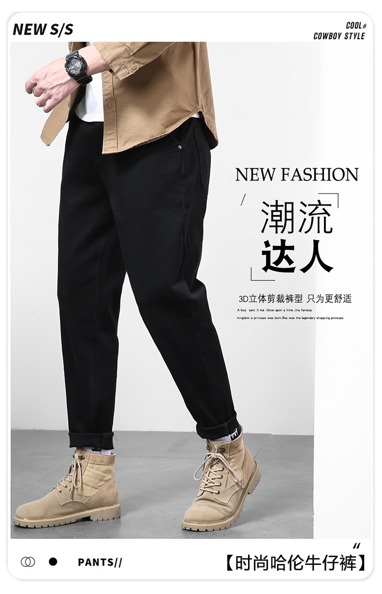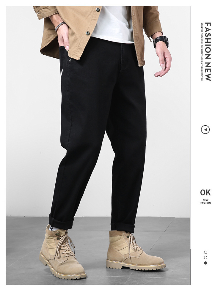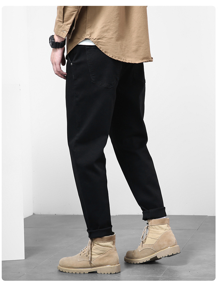 2024秋冬服男子ジーンズ男弾力黒小足ズボンハーレムズボン日系修身大サイズ長ズボン