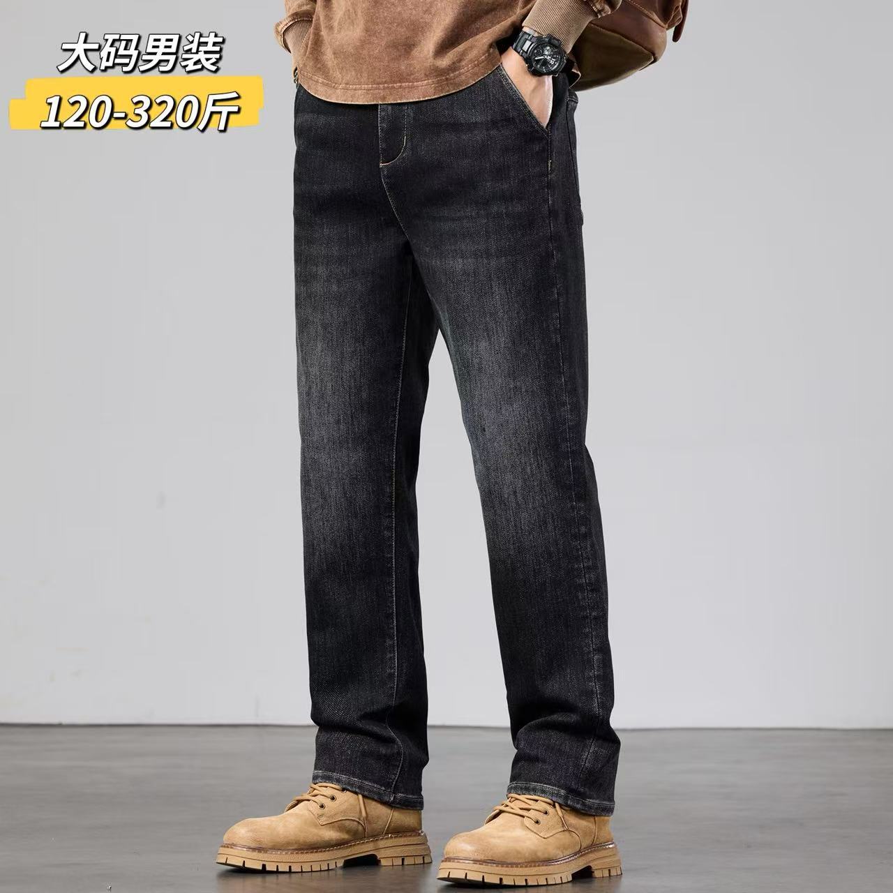 2024春秋にジーンズを弾いた男性は太っていて、太っていて、太っている人のストレートで体を修理する力のズボンを大きくした