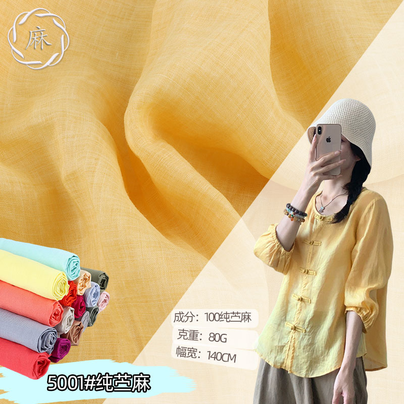 純粋なラミー生地 70 グラム 5001 春と夏の薄い半透明のドレスシャツ女性の綿とリネン生地卸売用に在庫あり
