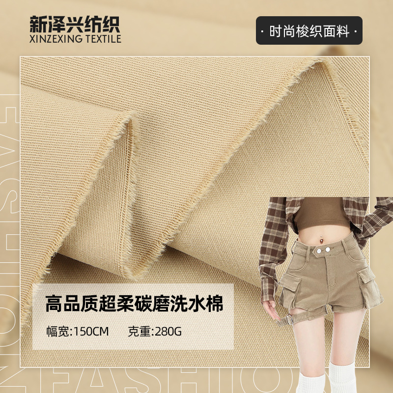 全棉斜纹纱卡 108*56超柔洗水棉 280g梭织工装裤休闲裤布料 现货