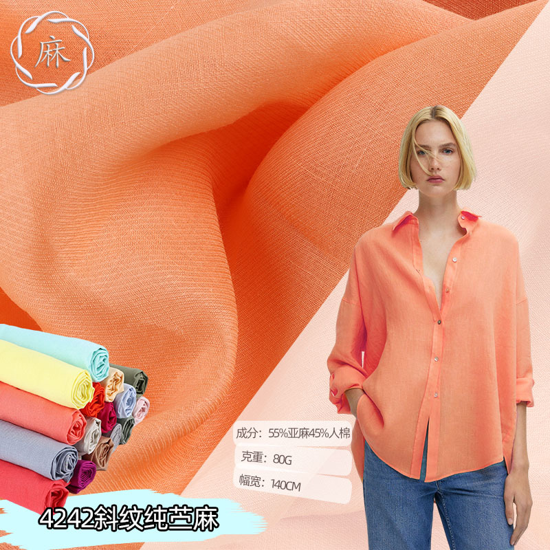 42本のツイル純ラミー麻生地80g春夏薄い中国風ワンピースシャツ半スカート綿麻生地
