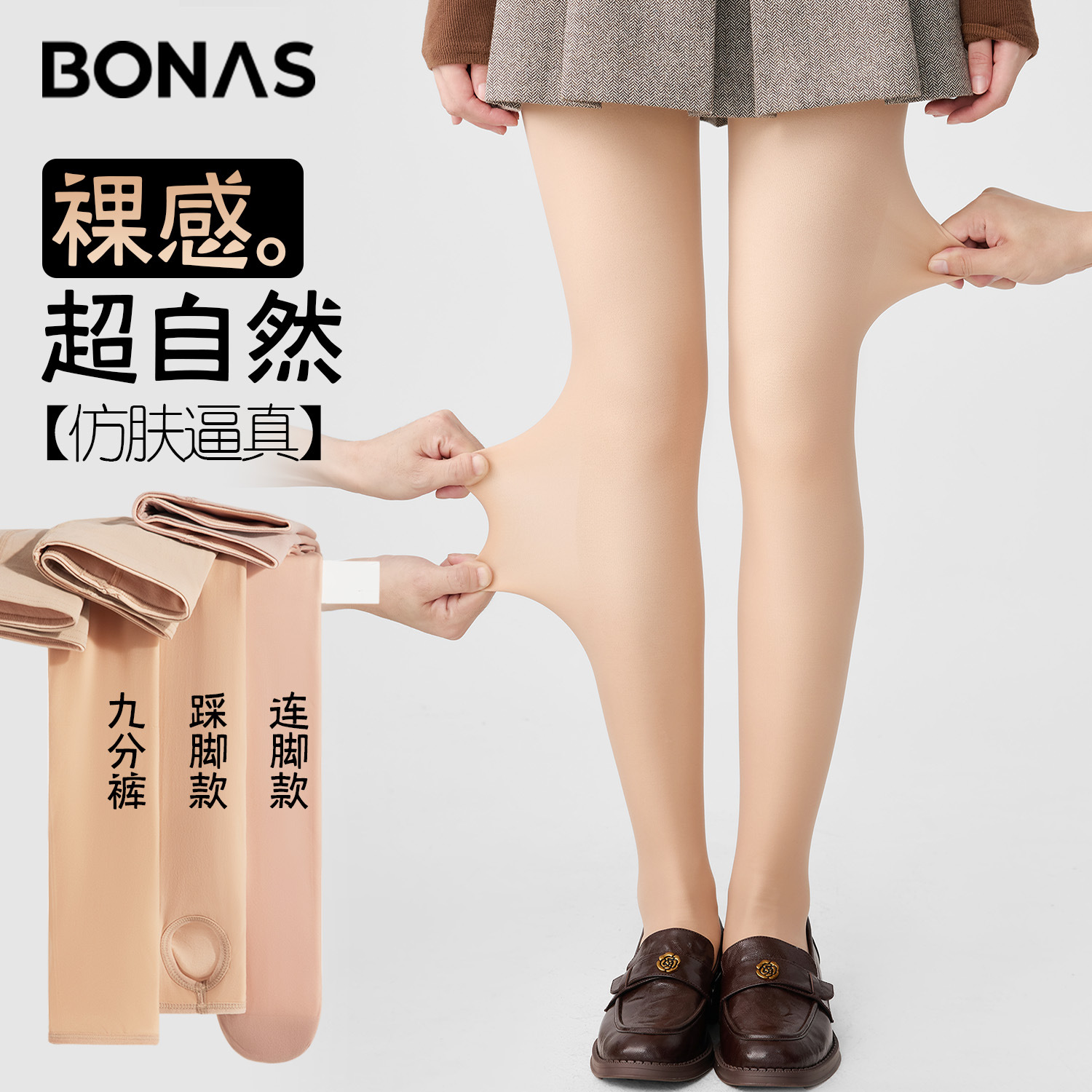 宝娜斯光腿神器纽扣款秋冬裸感肉色丝袜加绒可拆卸超自然打底裤袜