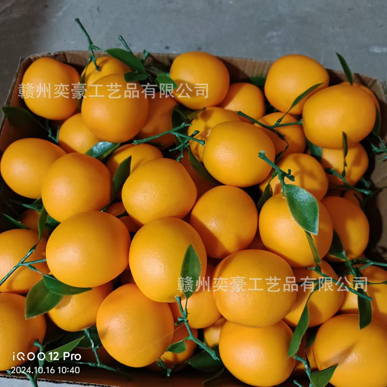 高シミュレーション果物模型偽の泡人工新奇士臍オレンジ道具展示葉付きオレンジサンプル装飾