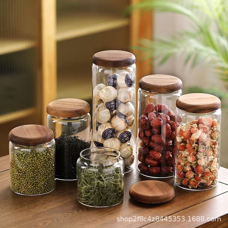 茶葉缶ガラス缶密封缶木蓋ガラス瓶貯蔵缶陳皮貯蔵缶コーヒーキャンディー収納缶