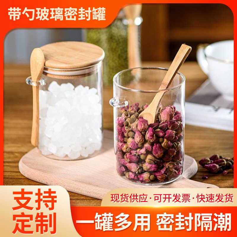 ガラス密封缶蓋付き収納缶木スプーン付き雑穀ドライフルーツ貯蔵缶台所貯蔵ガラス密封瓶